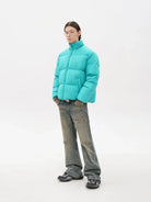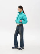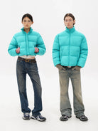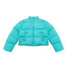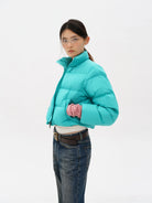 Stay warm and stylish with this vibrant turquoise puffer jacket, designed specifically for women. Filled with 90% white duck down, it offers exceptional insulation and features a built-in mobile heating element for enhanced warmth in cold conditions. The horizontal quilting ensures even heat distribution, while the front zipper closure and high neck provide extra protection from the elements. Diagonally-placed side pockets add both functionality and a sleek, streamlined appearance, making it perfect for casual winter outings.