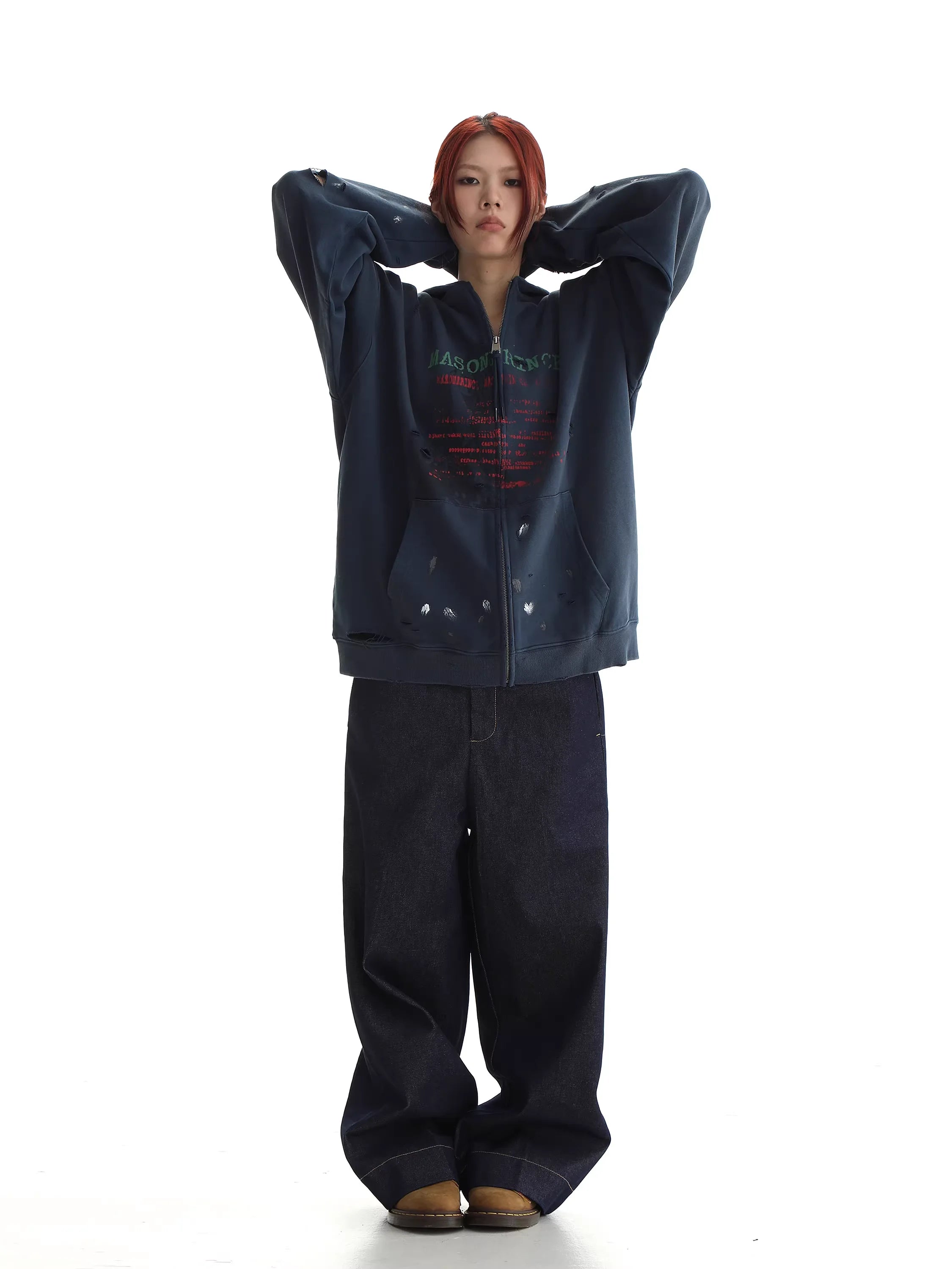 MASONPRINCE Women's Distressed Zip-Up Hoodie Jacket