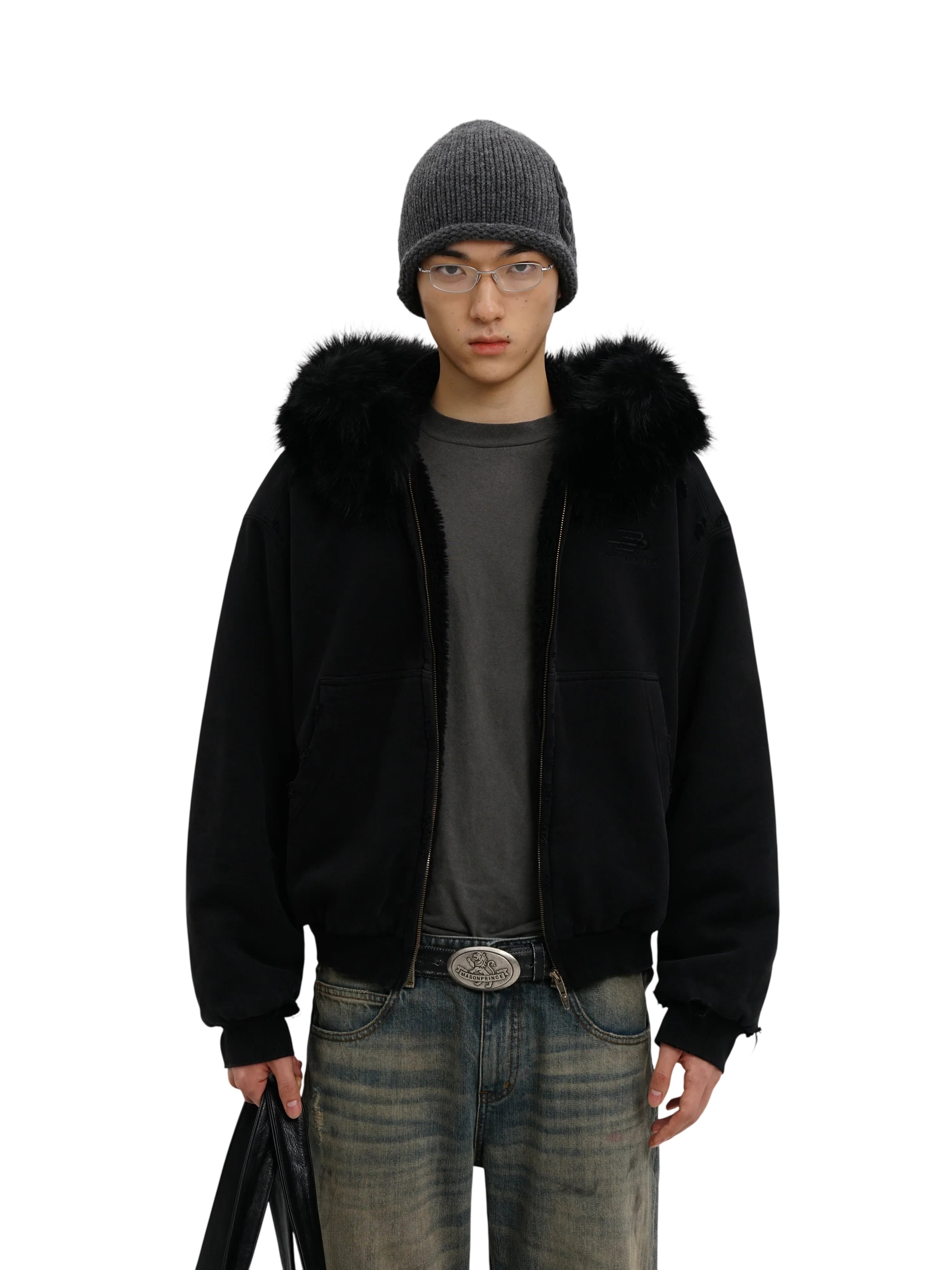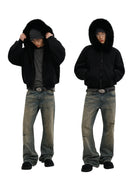MASONPRINCE Women's Faux Fur Collar Knit Fleece Bomber Jacket