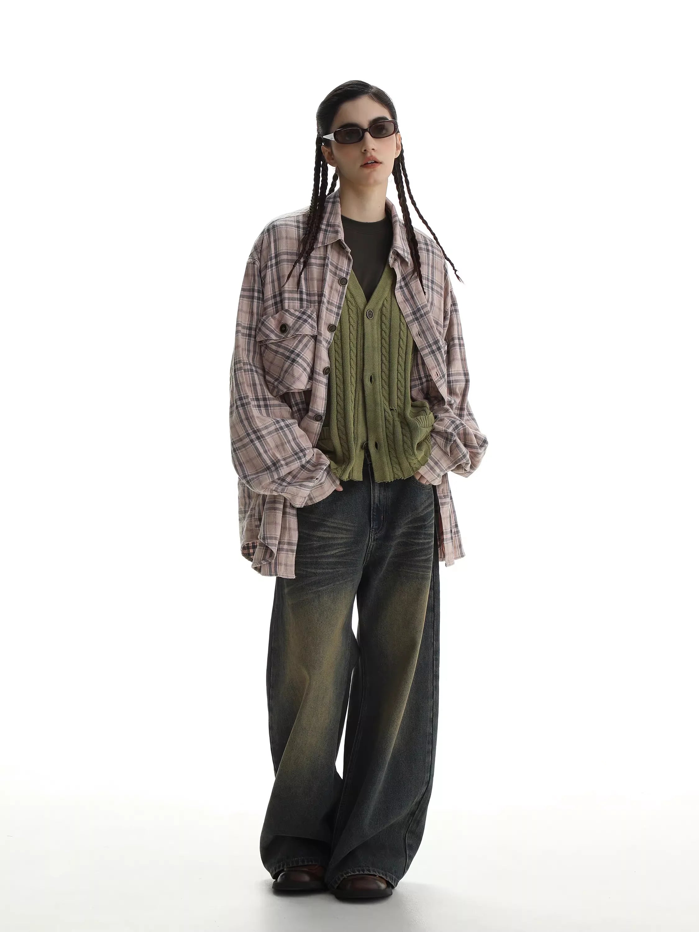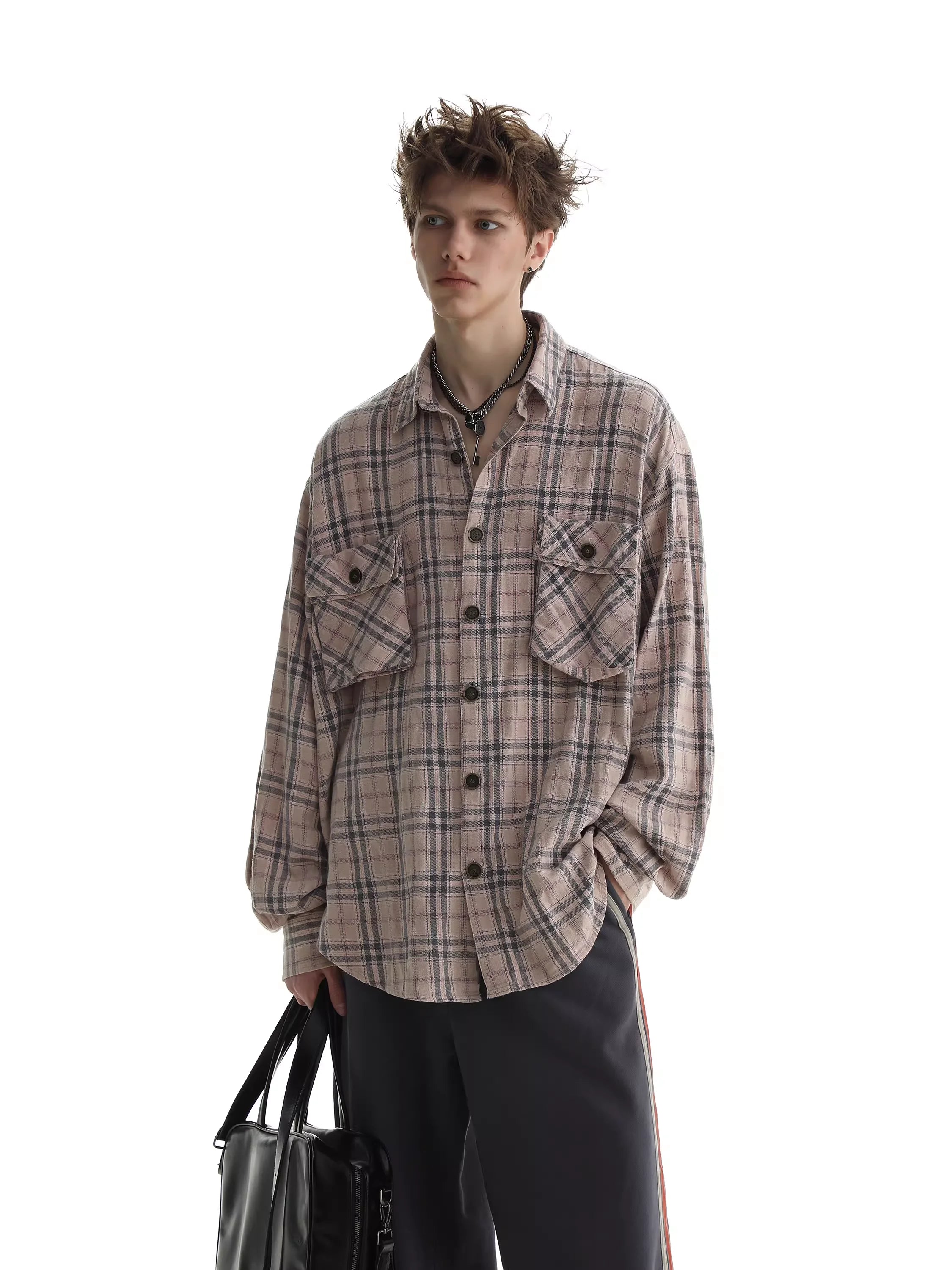 Stay warm and stylish with this women's fleece plaid flannel shirt, ideal for autumn and winter. Featuring a soft 3D pocket design and a relaxed, open-front fit, this shirt is perfect for layering over sweaters or base tops. The light pink and grey plaid pattern complements seasonal wardrobes, while the cozy fleece material adds comfort. Pair it with jeans for an effortless street-style look.
