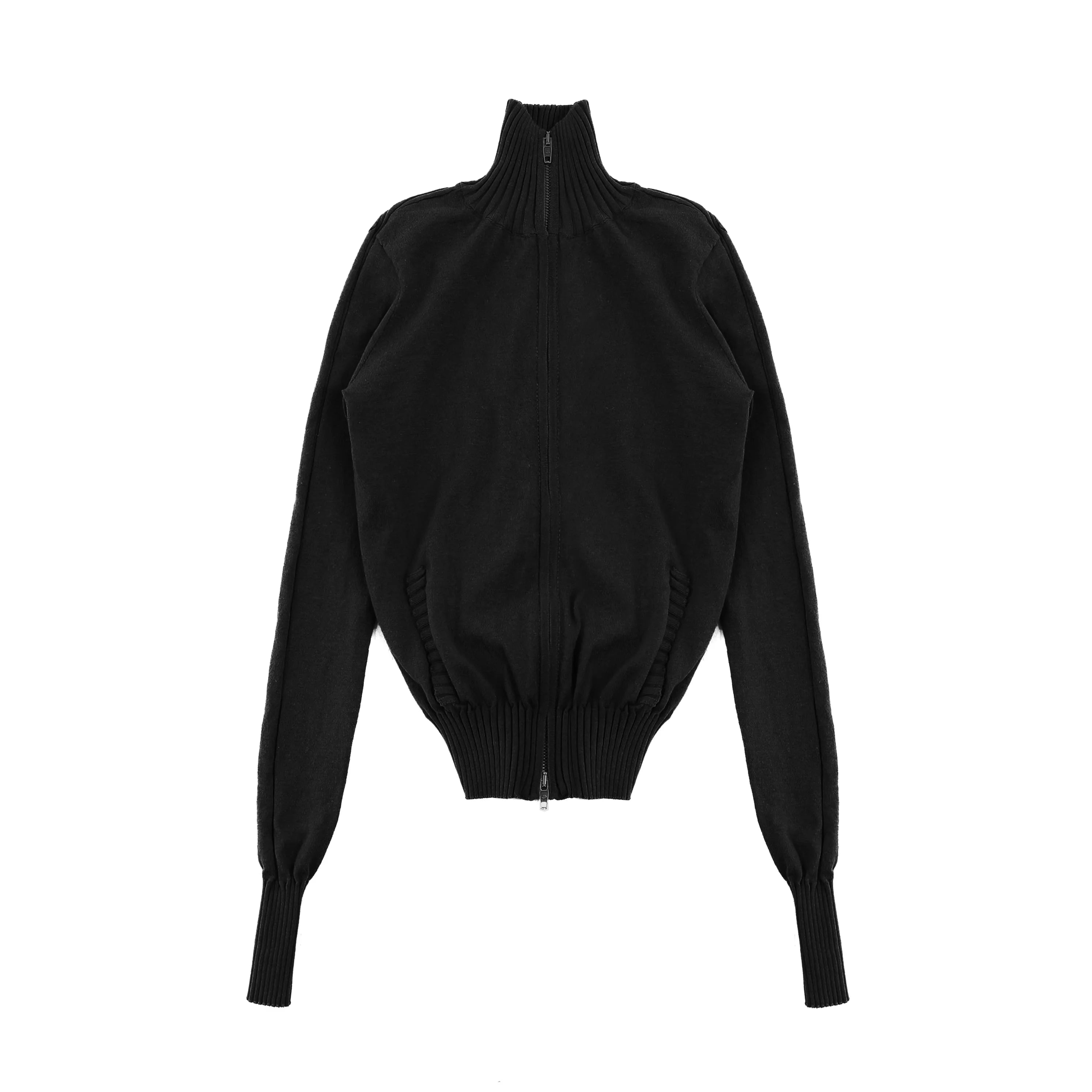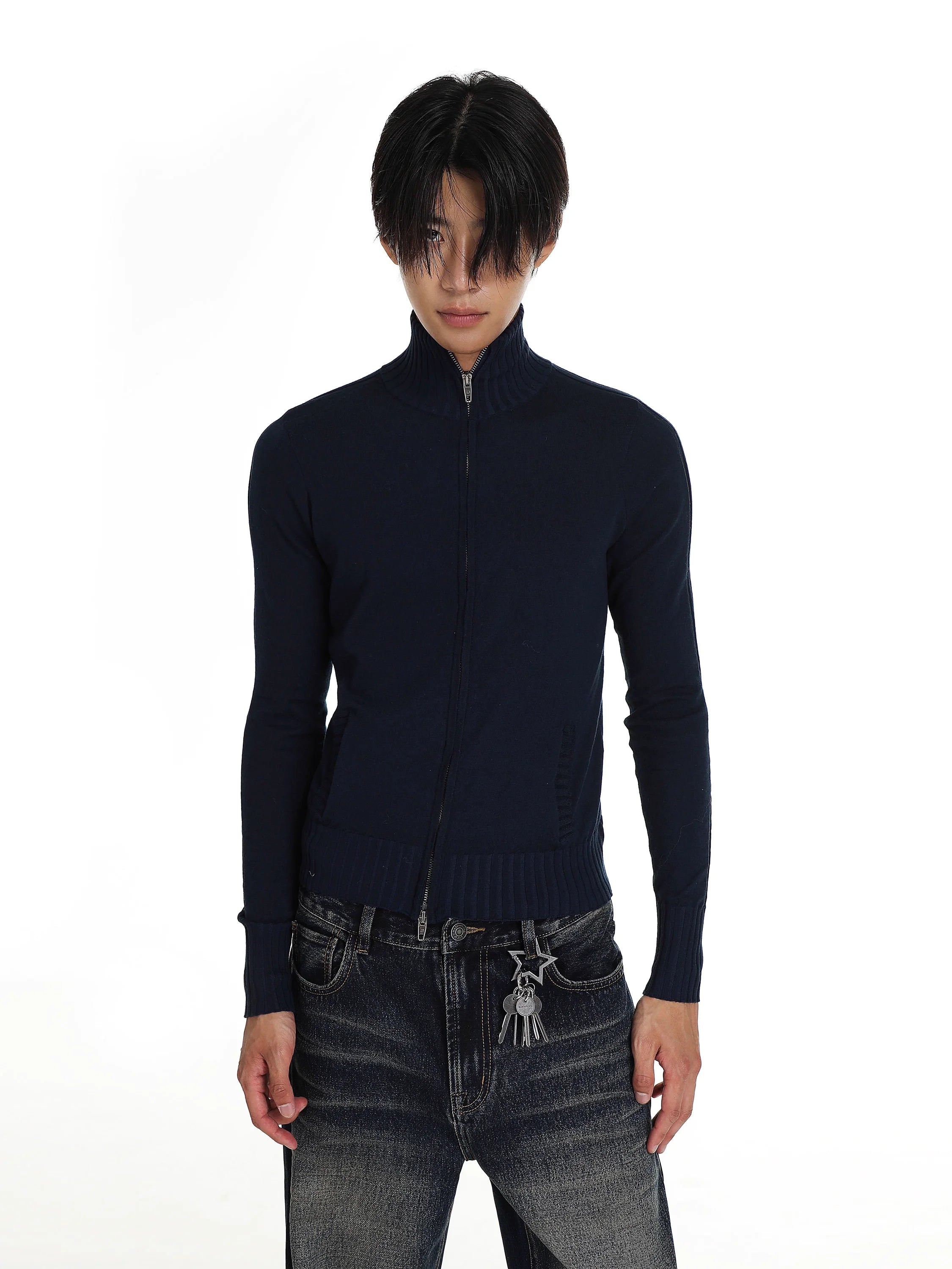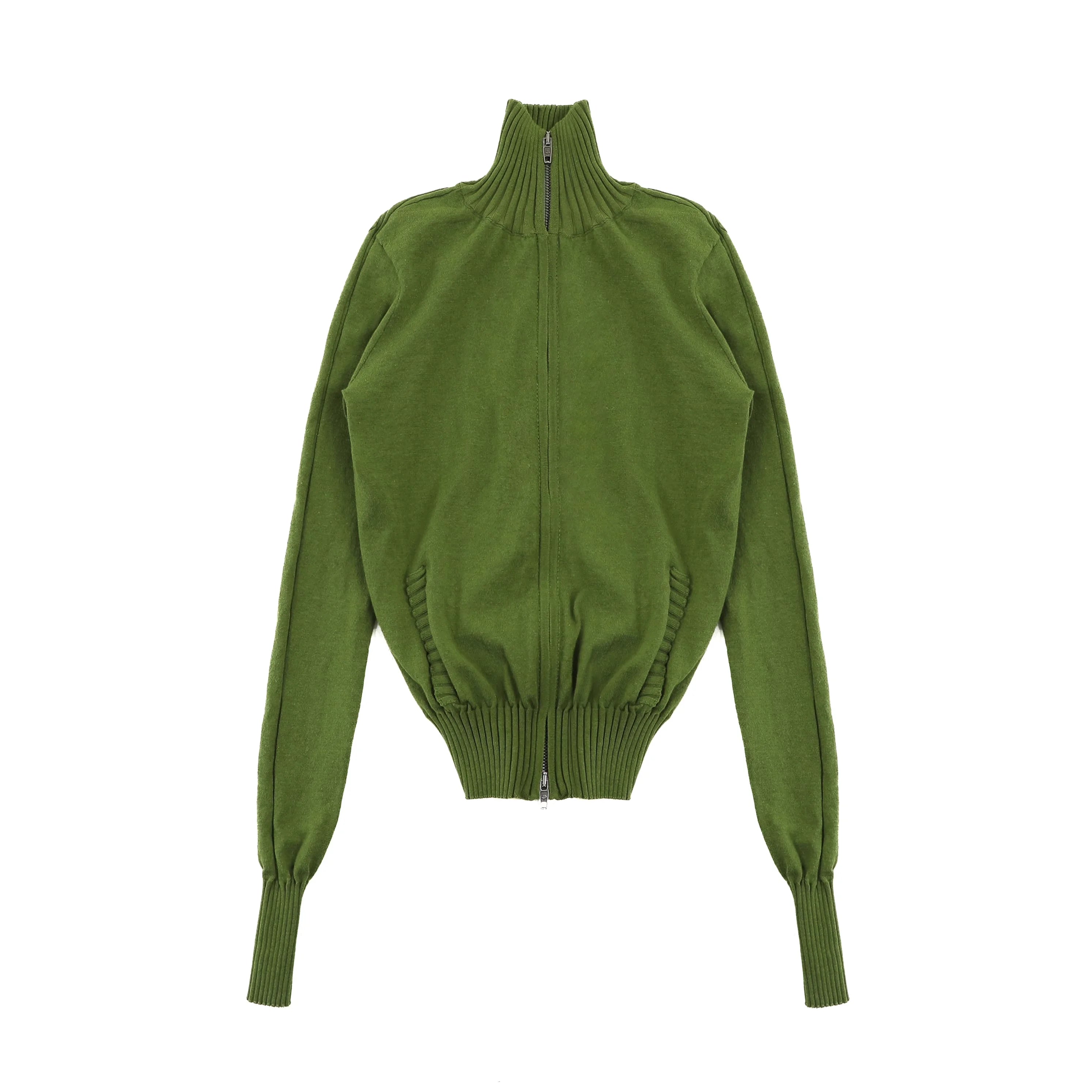This women's high-neck zip-up cardigan combines everyday comfort with a flattering tailored silhouette. Designed with a soft cotton-feel fabric, the cardigan features a full-length front zipper, ribbed hem and cuffs, and a neatly knitted texture for a polished look. Available in green, gray, navy blue, and black, it's ideal for layering and versatile styling.
