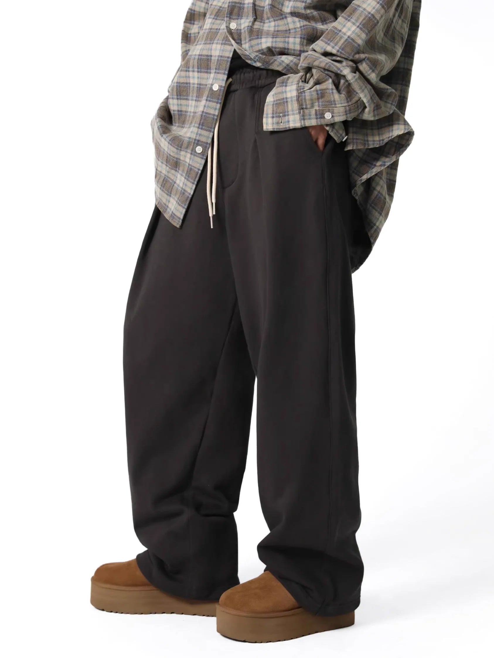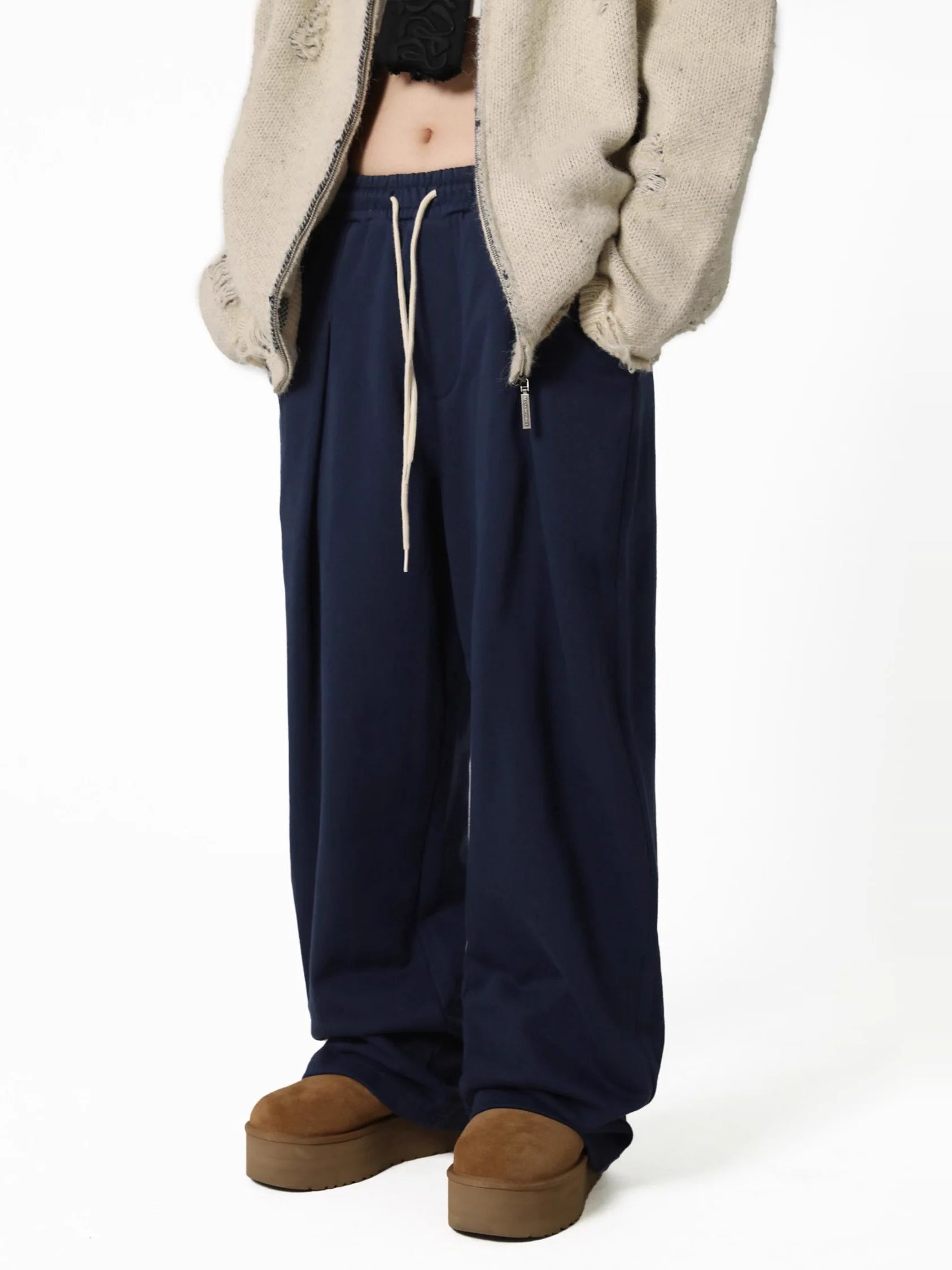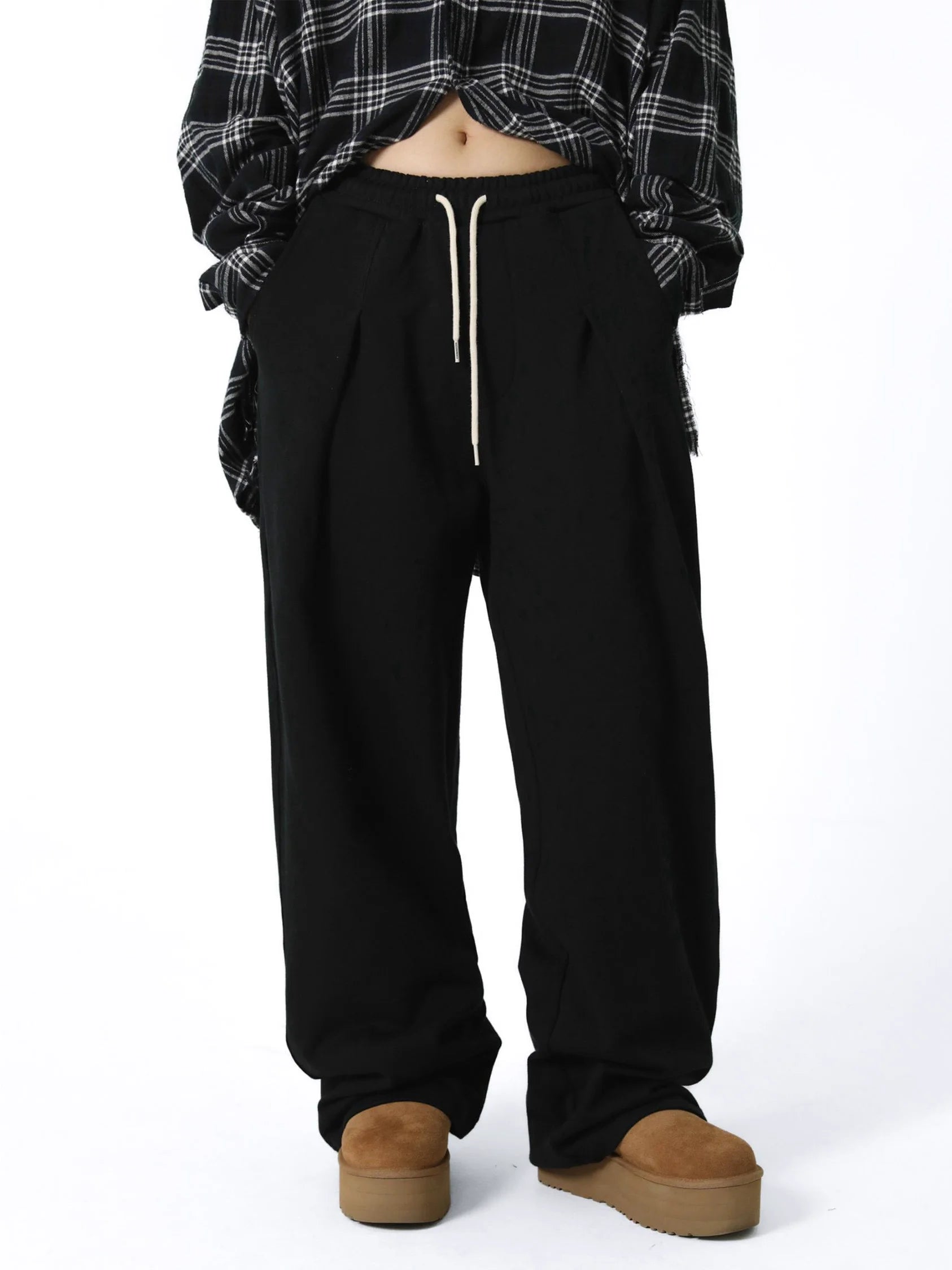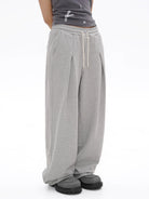 Elevate your casual wardrobe with these women's high waist knit sweatpants, perfect for autumn and winter wear. Featuring a comfortable elastic waistband with an adjustable off-white drawstring, these full-length pants offer a relaxed, oversized fit for all-day ease. The double pleated front adds a subtle touch of sophistication, while roomy side pockets provide practical storage. Crafted in a soft gray knit fabric, the wide-leg silhouette drapes effortlessly for a laid-back yet polished look.