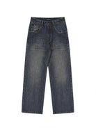 Elevate your casual wardrobe with these women's vintage-style A-line denim jeans. Featuring a flattering wide-leg silhouette and a comfortable mid-low waist, these jeans offer a timeless dark wash finish with a subtle slub texture. The classic five-pocket design, contrast stitching, and slight fade on the front and thighs add to their retro-inspired appeal. Finished with a button and zip closure, these jeans combine effortless style with everyday comfort.