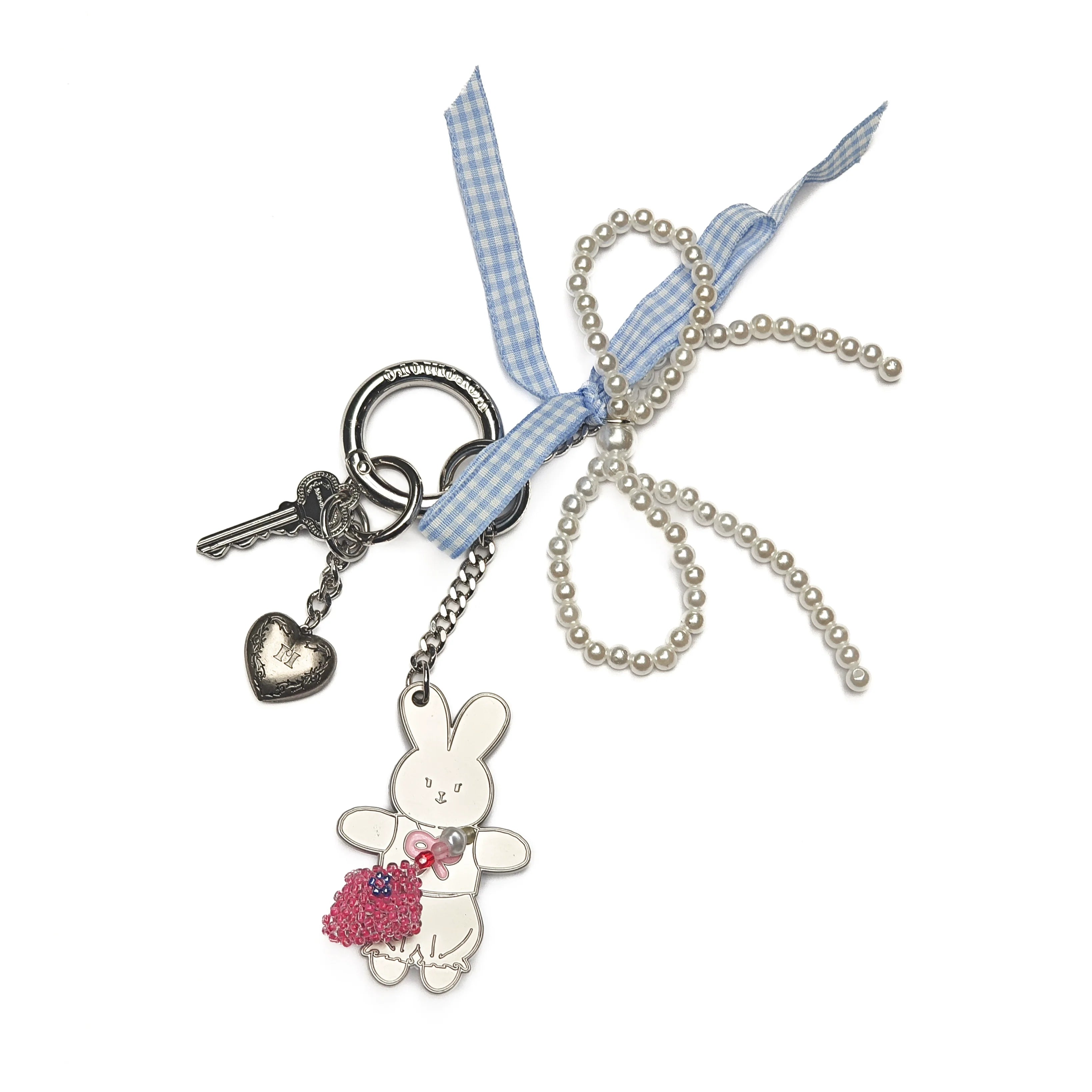 Moromoro Pearl Bow Rabbit Pendant & Comb Keychain