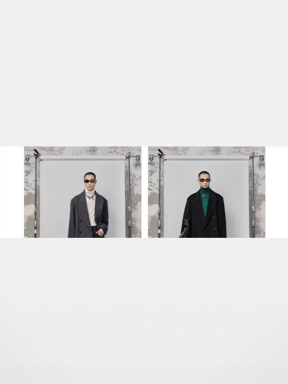 NANS's oversized coat in 100% lamb wool. Double-breasted closure, peak lapels, structured padded shoulders, and side flap pockets. Fully lined.
