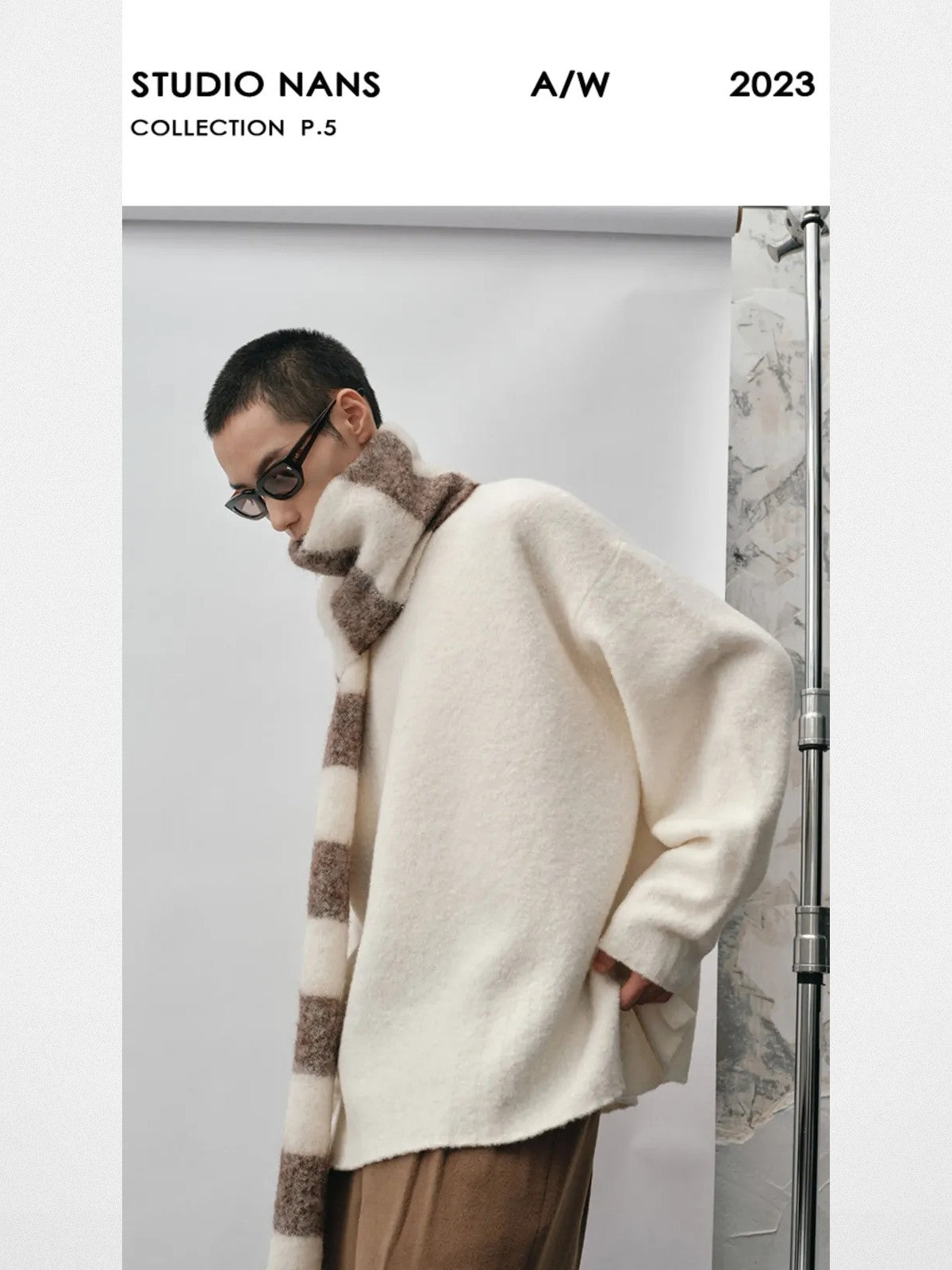 NANS's heavyweight crewneck sweater in an 82% lamb wool blend. Features a chunky bouclé knit texture, wide ribbed trims, and a straight hem.