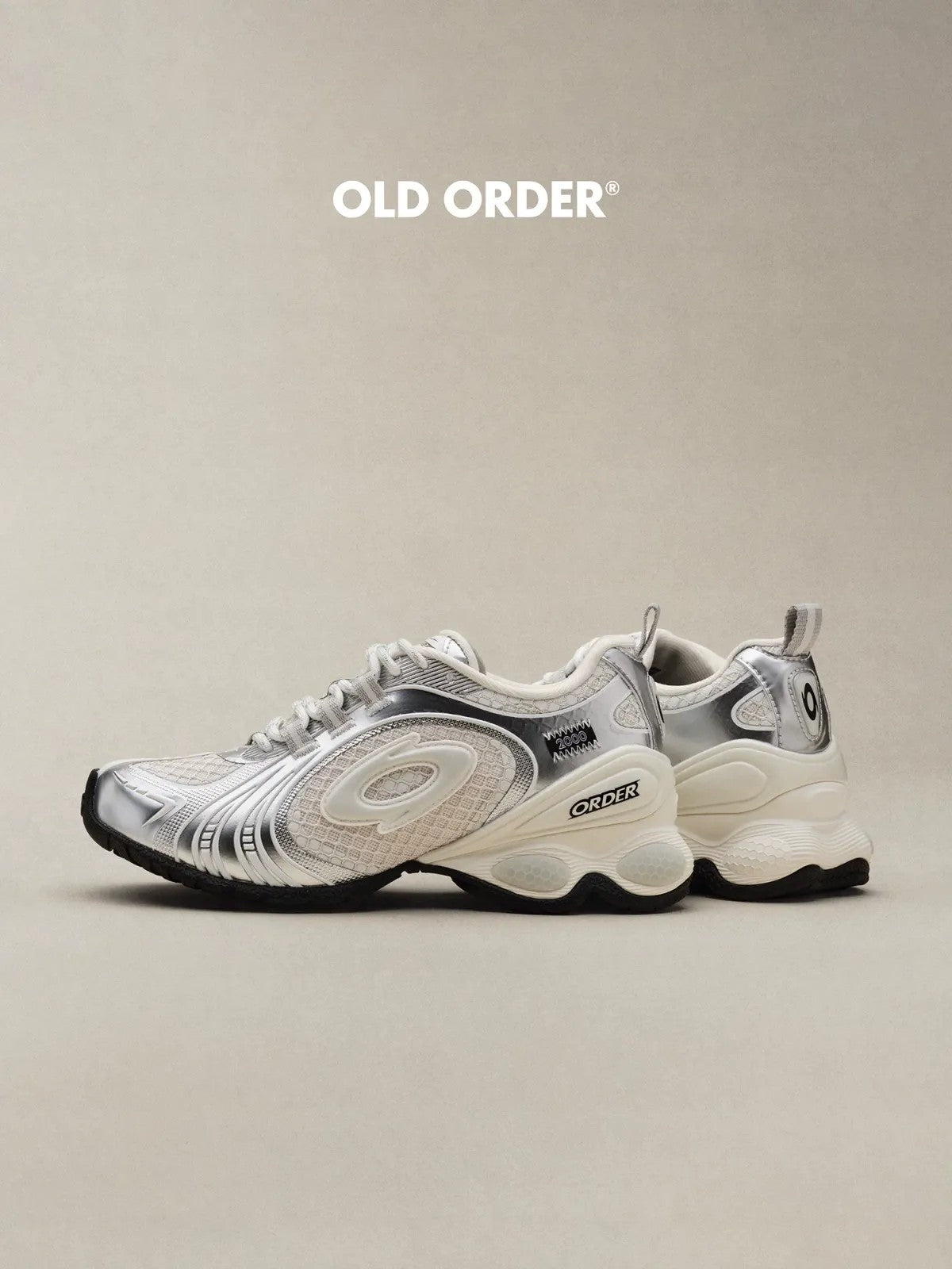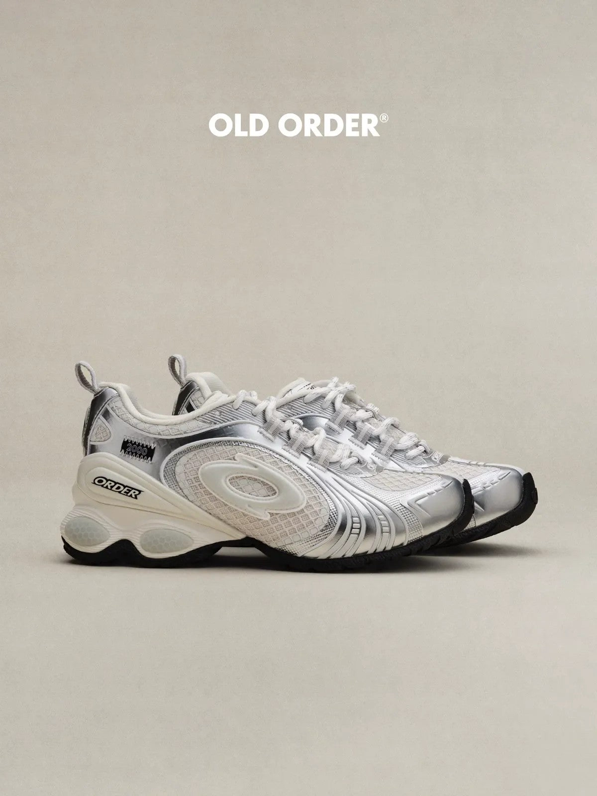 OLDORDER's Turbo GT sneakers in mesh and TPU. Chunky rubber platform sole, breathable mesh lining, lace-up closure.