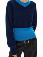 Elevate your winter wardrobe with this stylish two-piece colorblock sweater set, crafted from a premium wool-blend fabric featuring 30% wool for added warmth and enhanced anti-pilling performance. Designed with a modern V-neckline and cropped cut, this set is perfect for layered looks during cooler seasons.