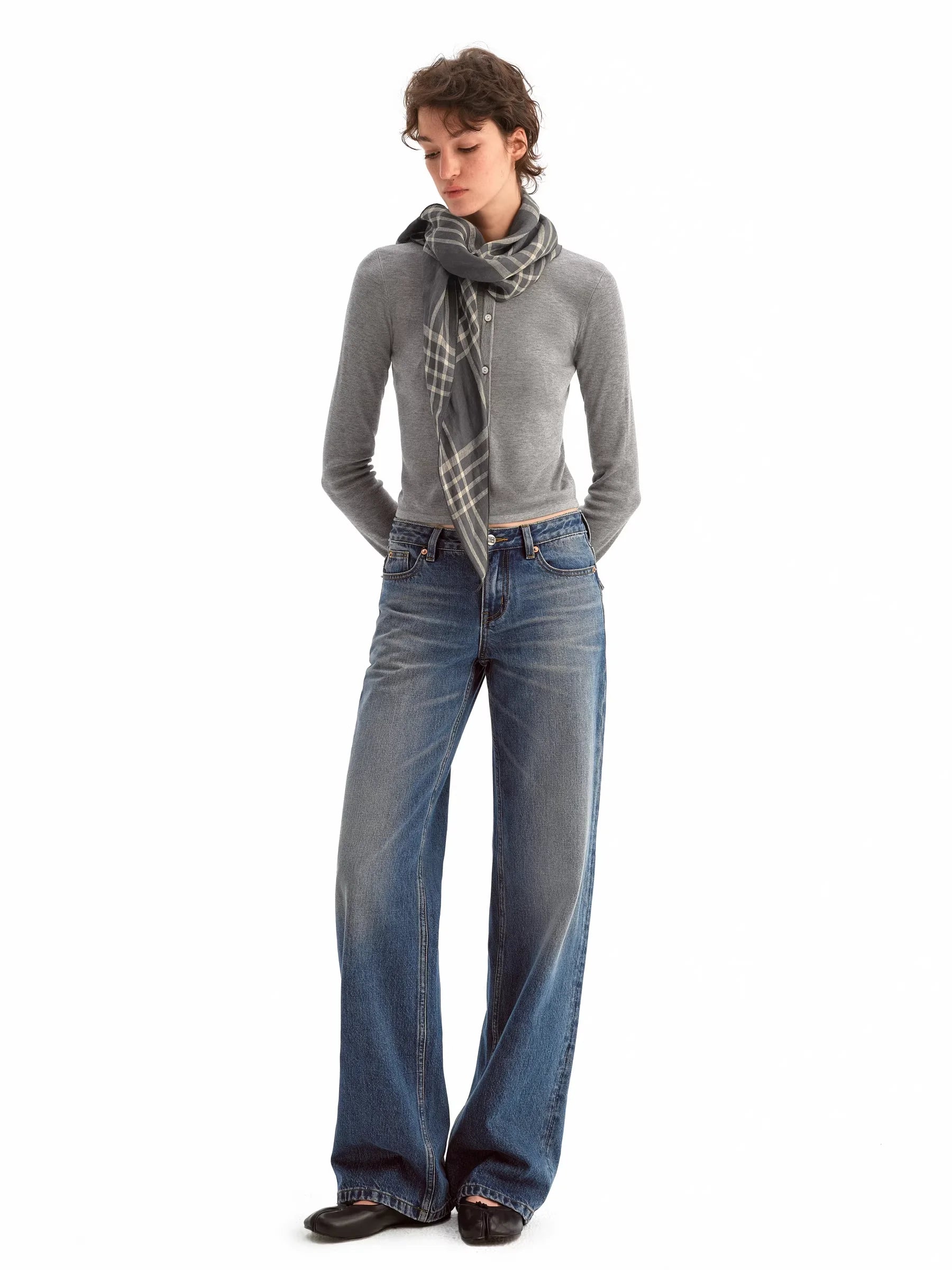 PUKI Lightweight Plaid Linen Triangle Scarf