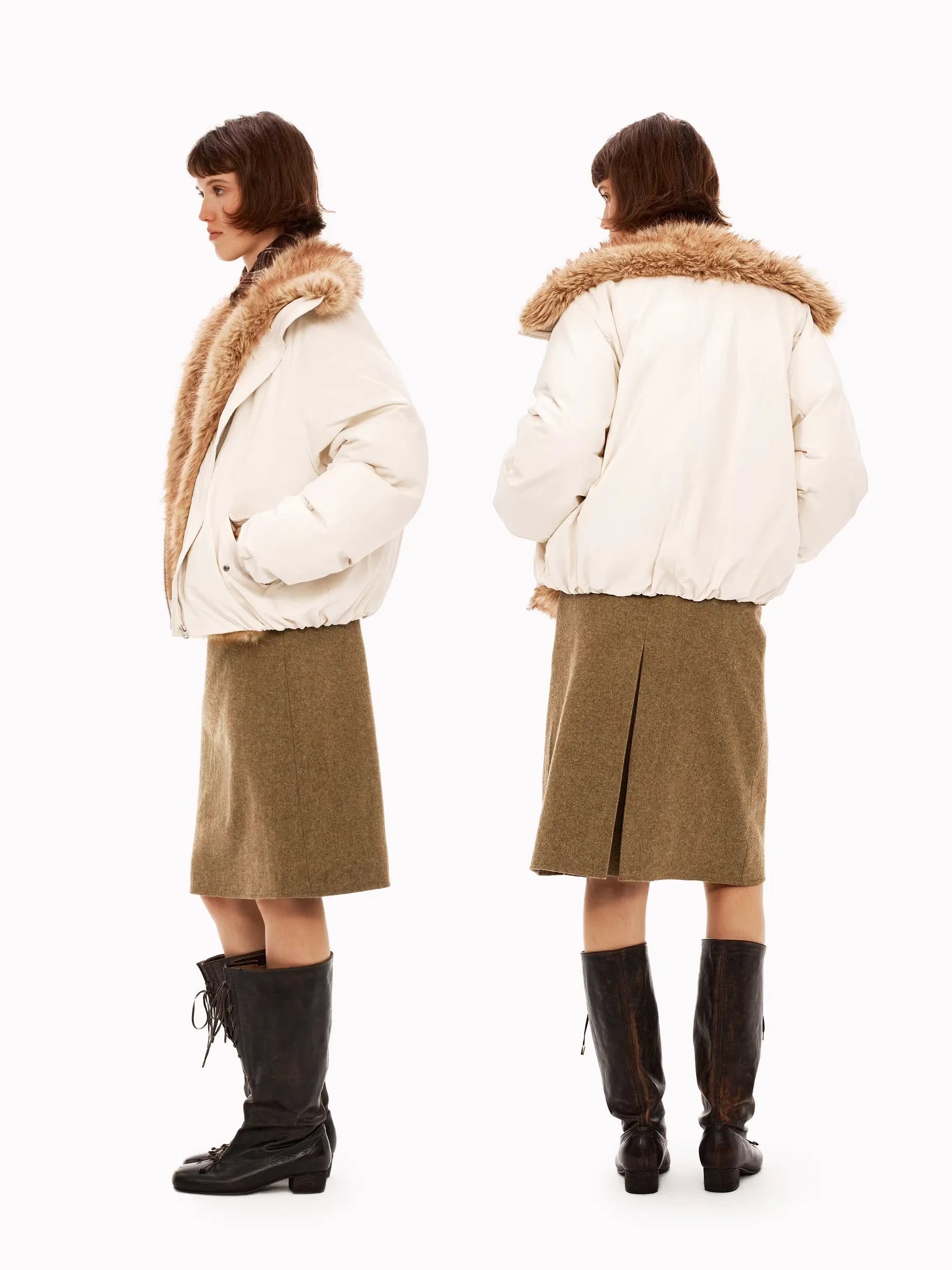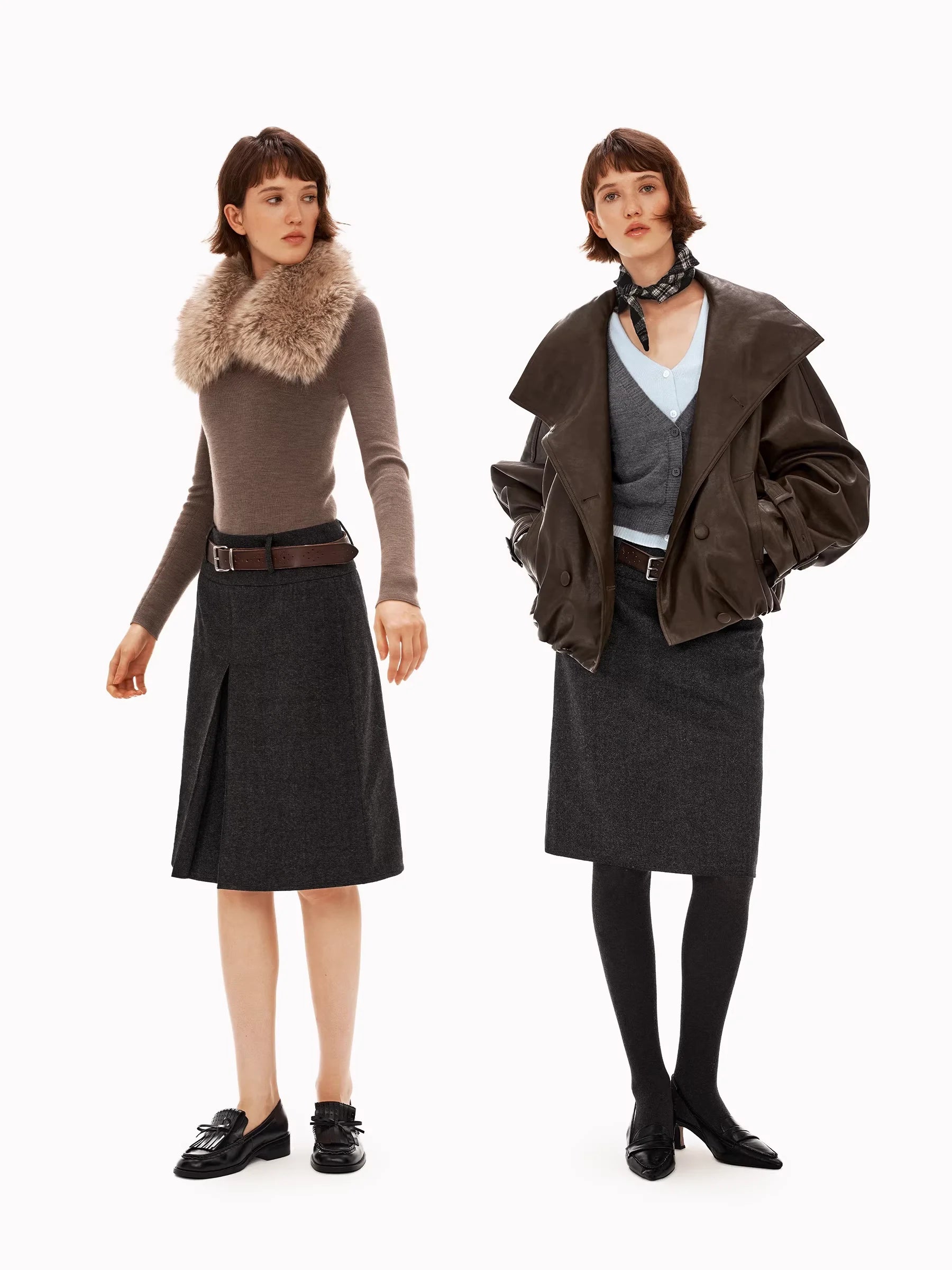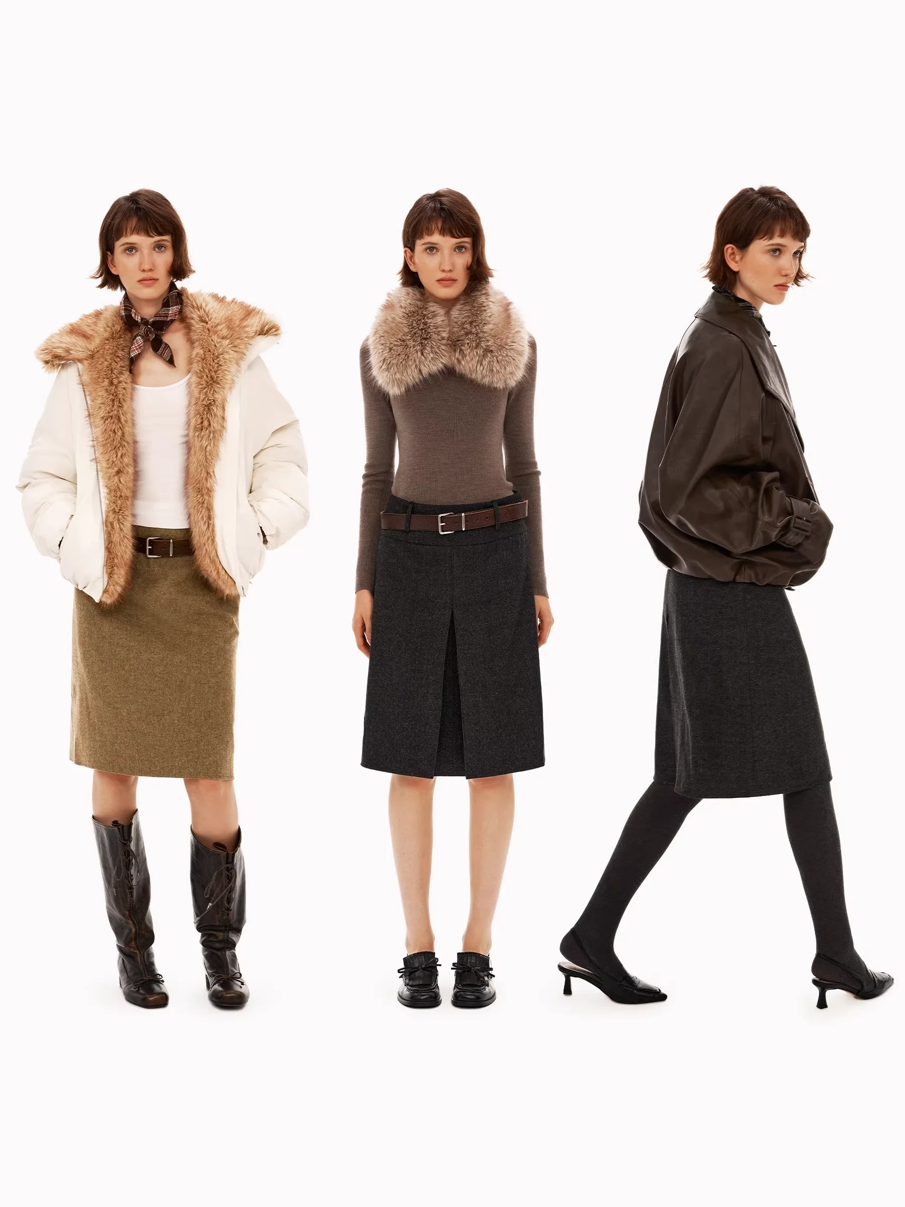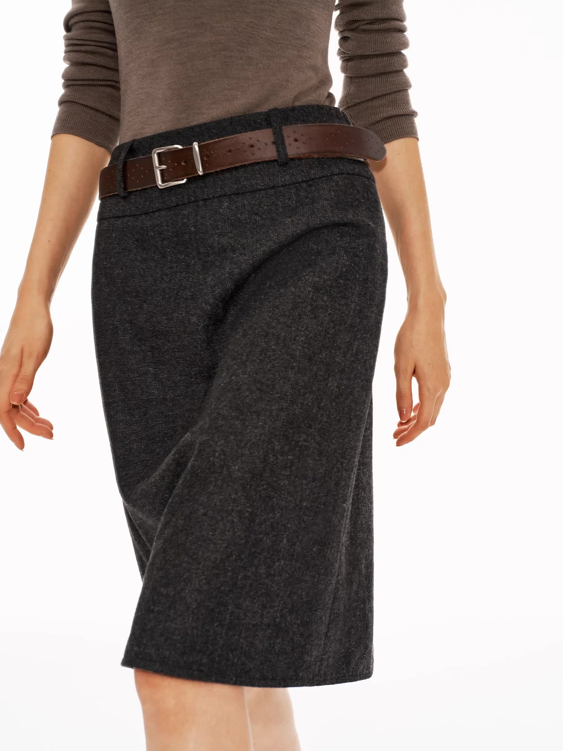 PUKI Reversible Wool-Blend A-Line Midi Skirt with Split Hem