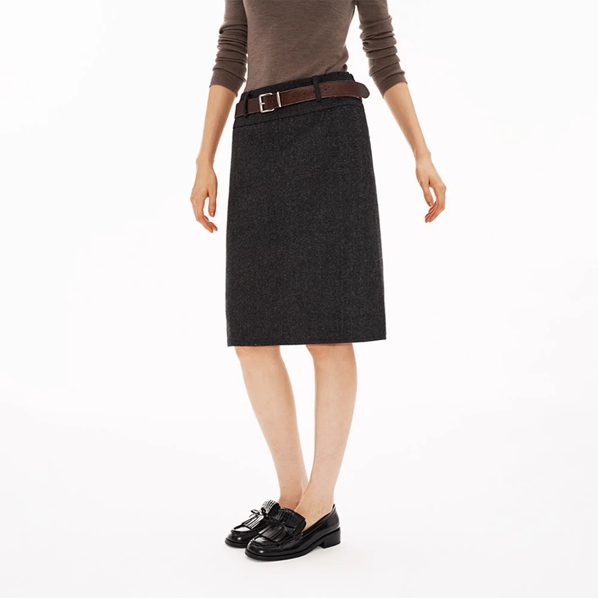 Designed for versatile winter styling, this women's A-line midi skirt is crafted from a warm wool-blend fabric with a textured finish. The reversible design adds functionality, while the split hem detail enhances movement and modern appeal. Perfect for layering, it pairs effortlessly with cozy knits and outerwear for a refined cold-weather look.