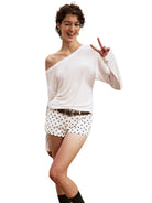 Effortlessly stylish and versatile, this women's off-shoulder long sleeve top is perfect for casual summer days. Crafted from breathable, soft fabric, it offers a relaxed slim fit that drapes comfortably off one shoulder for a chic, laid-back look. Available in classic black and white, it pairs seamlessly with jeans or lounge pants for an easy, go-anywhere outfit.