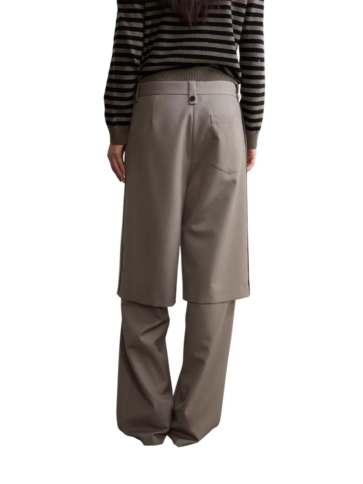 Elevate your winter wardrobe with these stylish women's wool blend trousers. Featuring a high-waisted, wide-leg silhouette and structured pleats, these trousers offer a sleek yet relaxed fit. The faux two-piece layering design creates a unique shorts-over-pants appearance, adding a modern twist to classic tailoring. Perfect for casual or sophisticated looks, these trousers bring both comfort and fashion-forward style to your seasonal outfits.