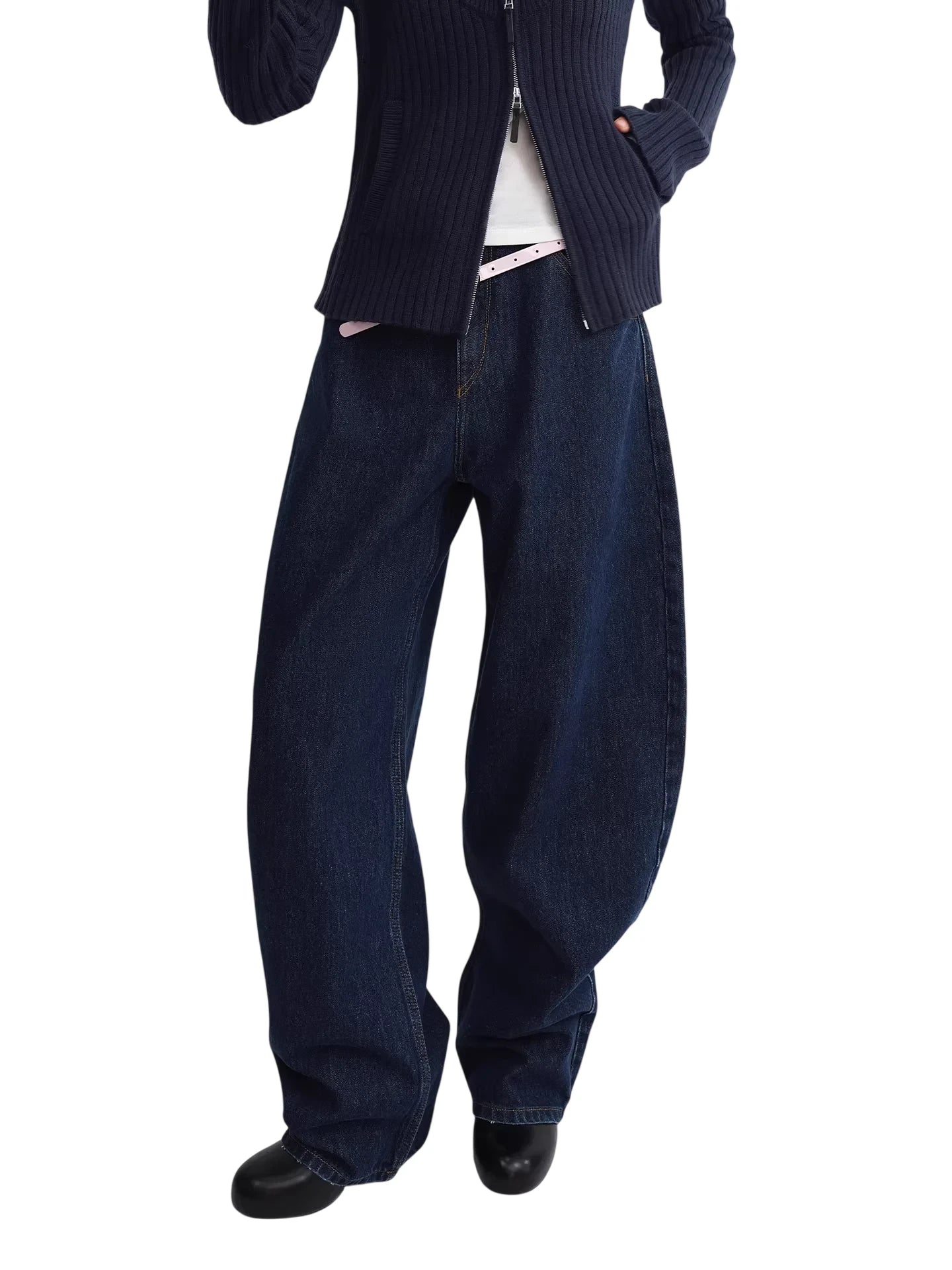 RARELY ALIKE Mid-Rise Wide-Leg Tilda Jeans - Dark Blue / Black Gray