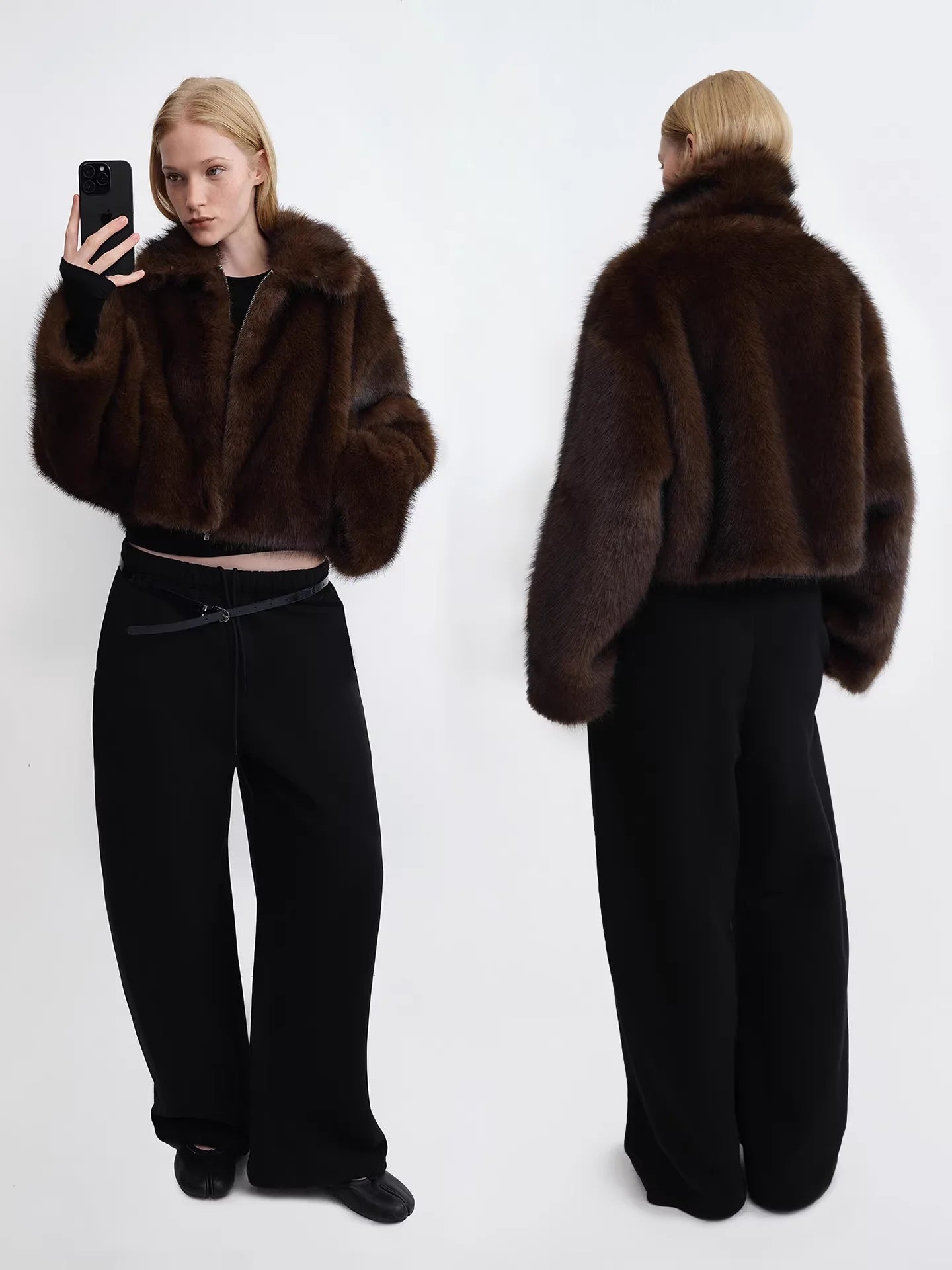 This stylish short faux fur jacket combines luxurious texture with casual ease, making it a must-have for contemporary wardrobes. Featuring a soft suede lining, the jacket is available in two elegant color choices: dark coffee and light beige. Designed for women, its cropped silhouette and cozy material offer warmth and sophistication in equal measure. Perfect for layering over skirts or jeans, it effortlessly elevates both polished and relaxed looks.
