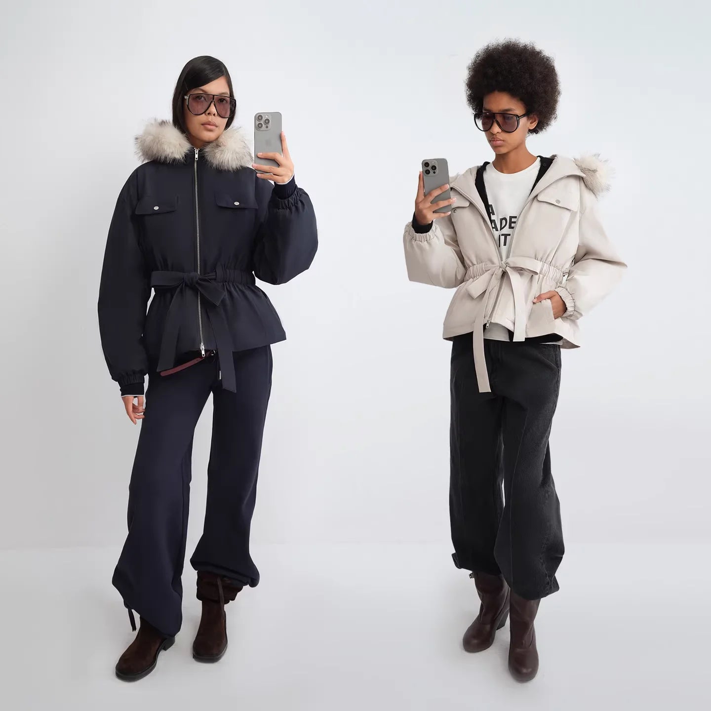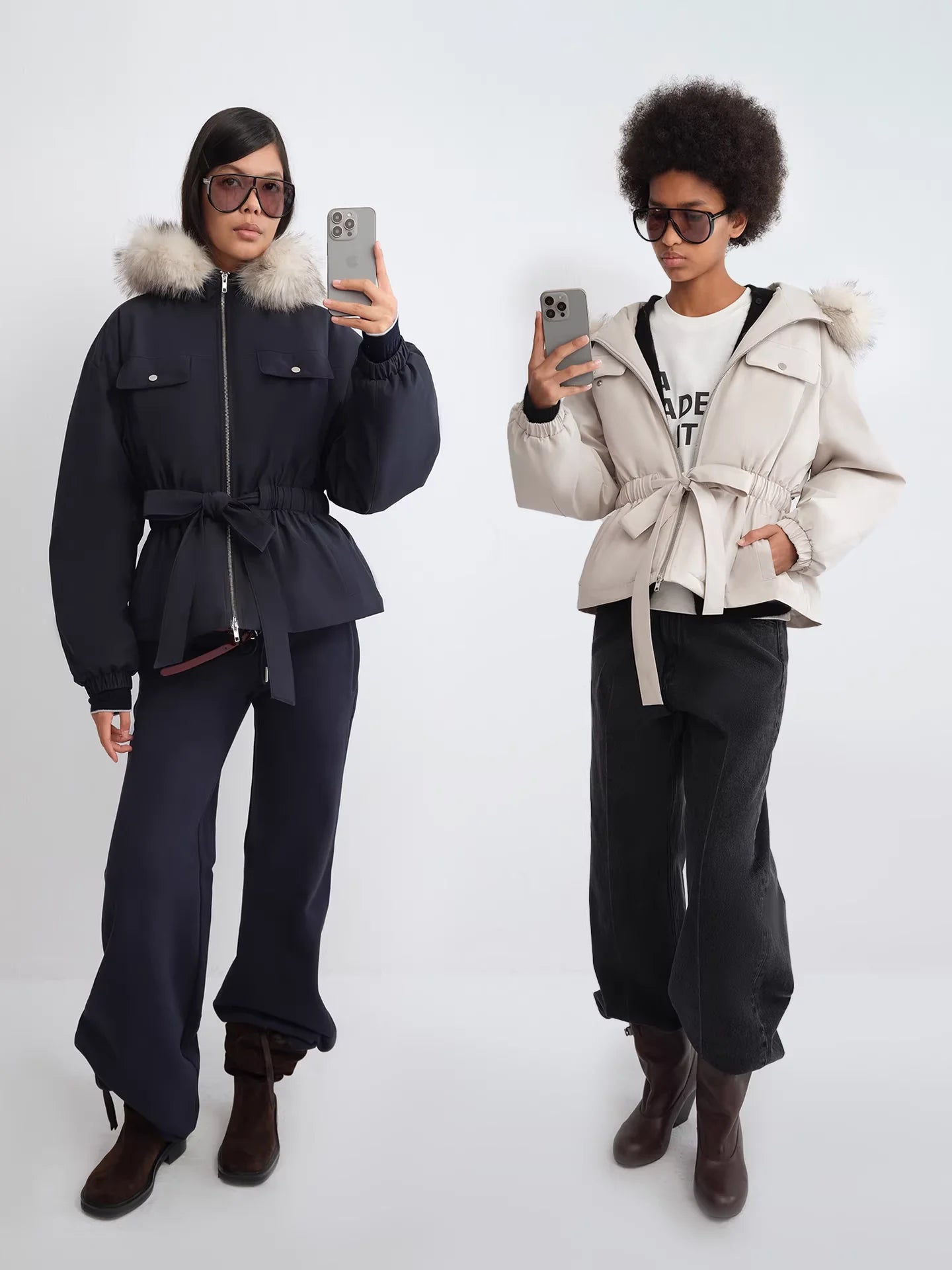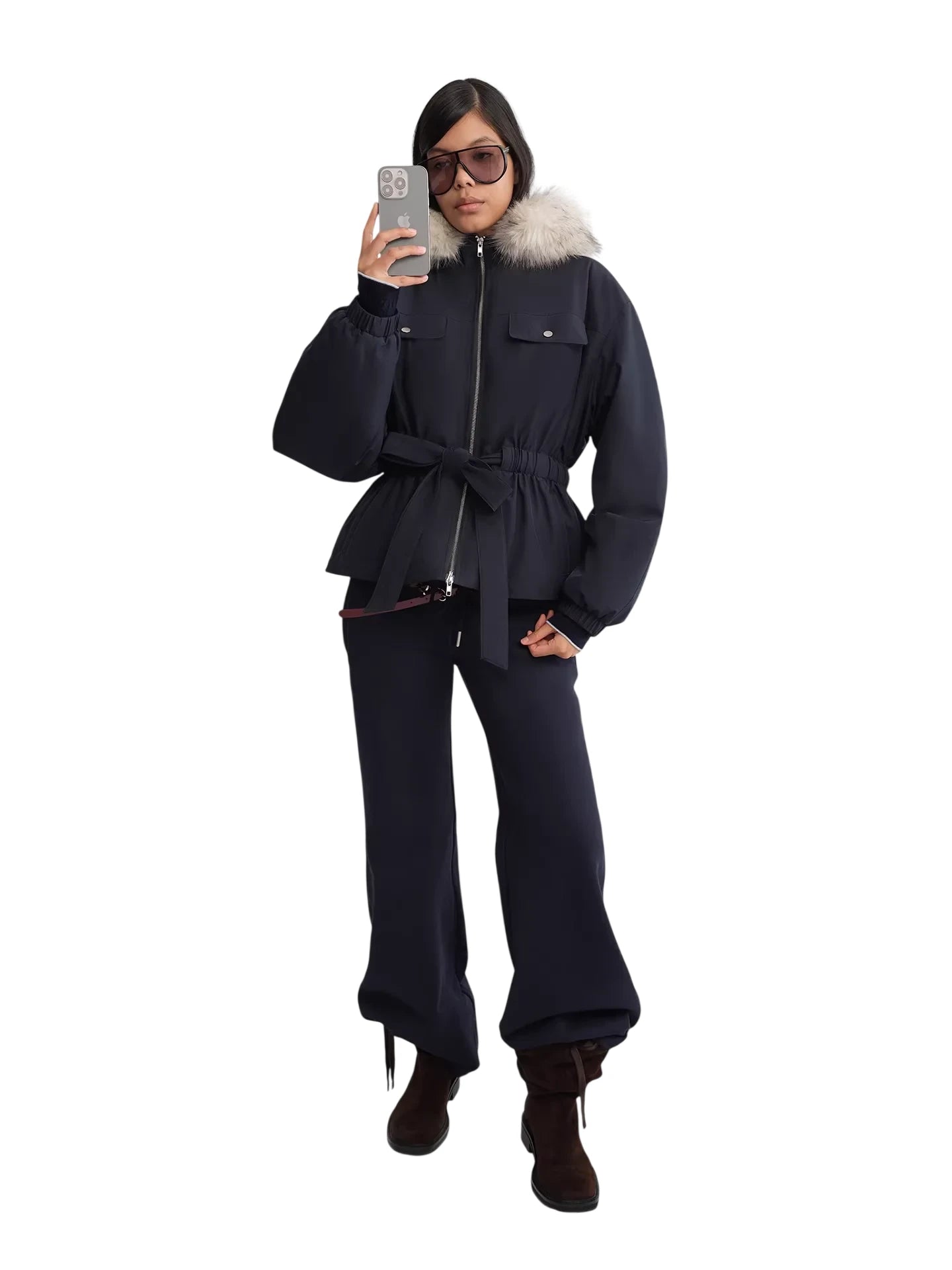 Stay warm in style with this chic women's winter coat, designed with a flattering belted waist and cozy hood trimmed with detachable faux fur. This cotton coat is available in classic beige and navy blue, offering versatility for your cold-weather wardrobe. Featuring a front zip closure and functional flap pockets at the chest, this coat combines practicality with fashion. Ideal for casual winter outings, it delivers both comfort and elegance in cooler temperatures.
