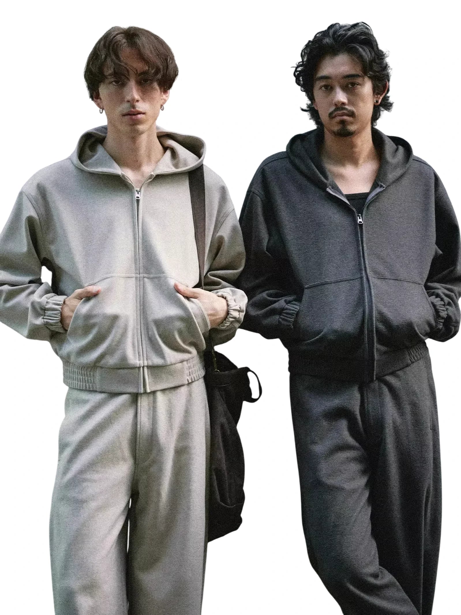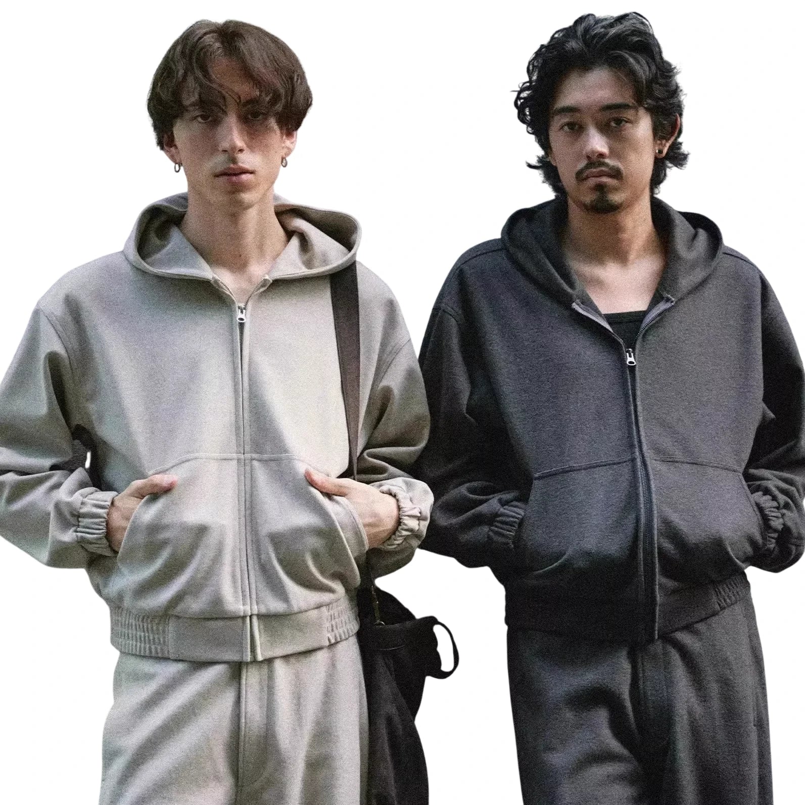Stay comfortable and stylish with this men's zip-up hoodie, crafted from soft brushed fleece fabric for warmth and flexibility. Featuring a full front zipper, kangaroo pockets, and elasticized cuffs and waistband, this hoodie is perfect for casual, cool-weather wear. Its minimalist design and neutral color options make it a versatile addition to any wardrobe.