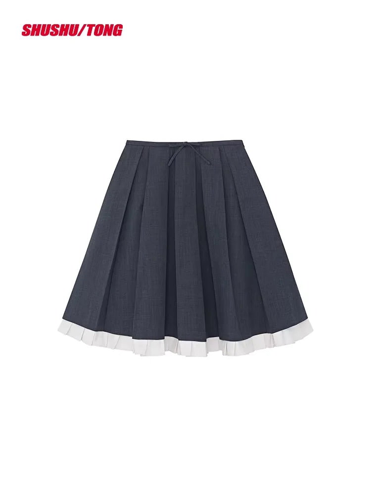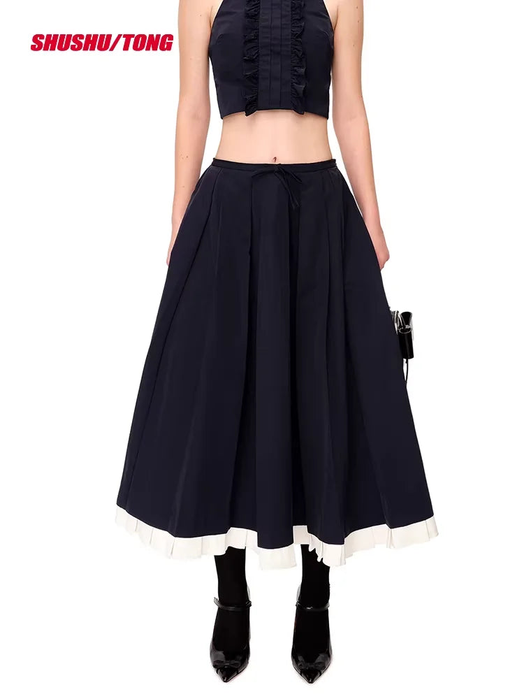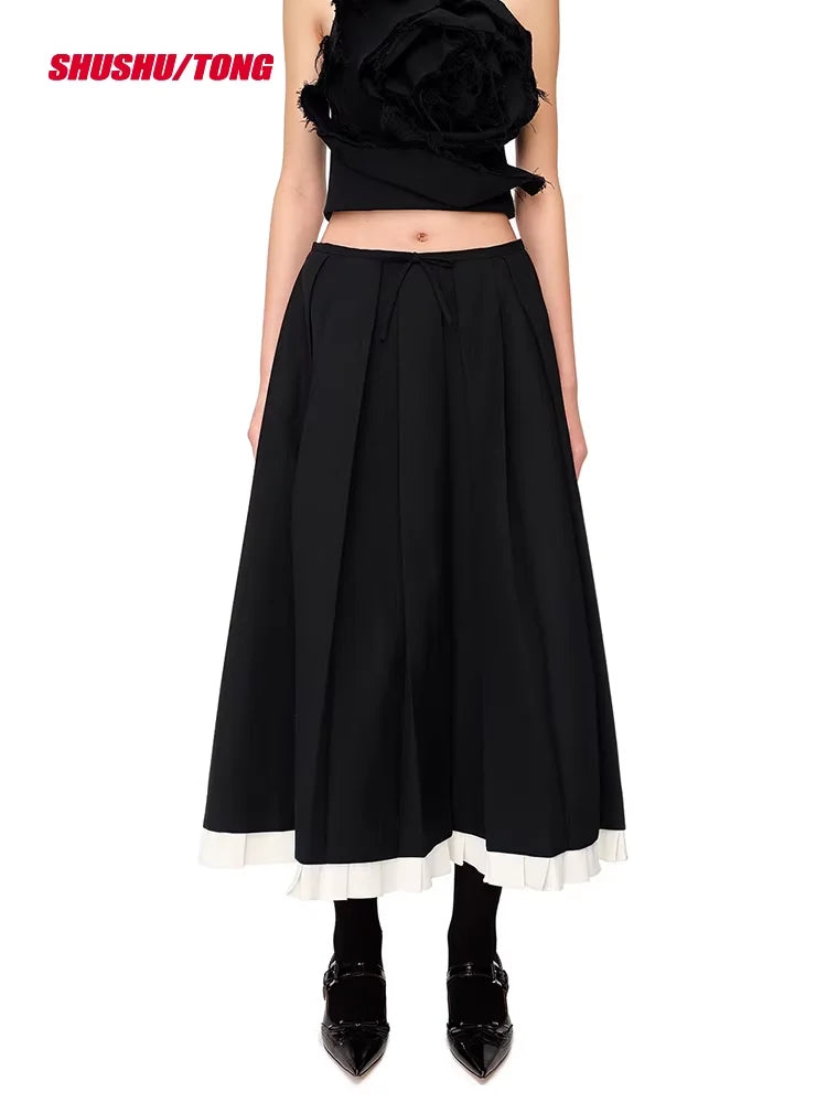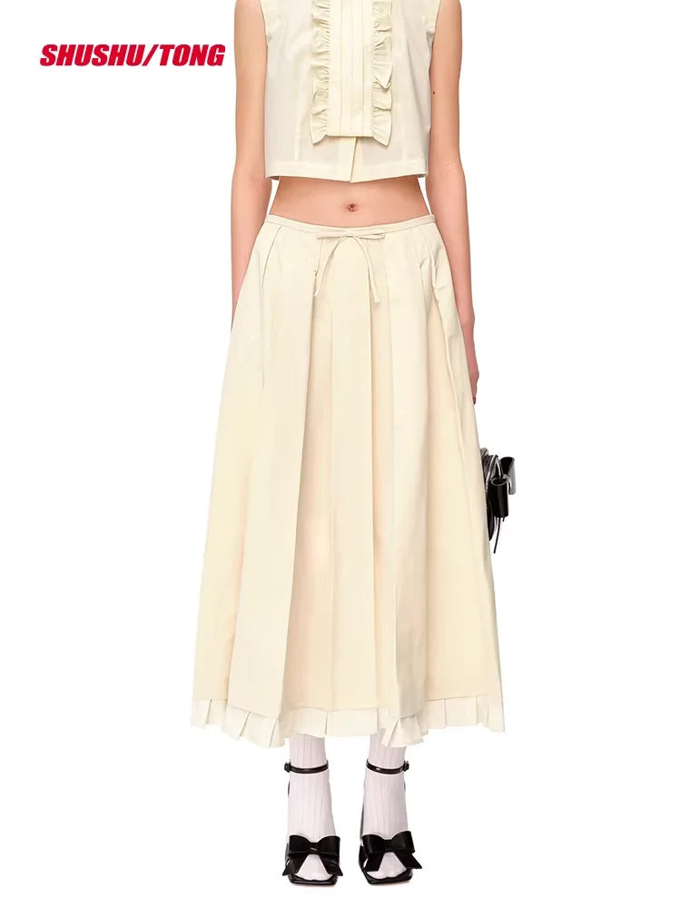 shushutong Women's Pleated Midi Skirt with Ruffled Hem
