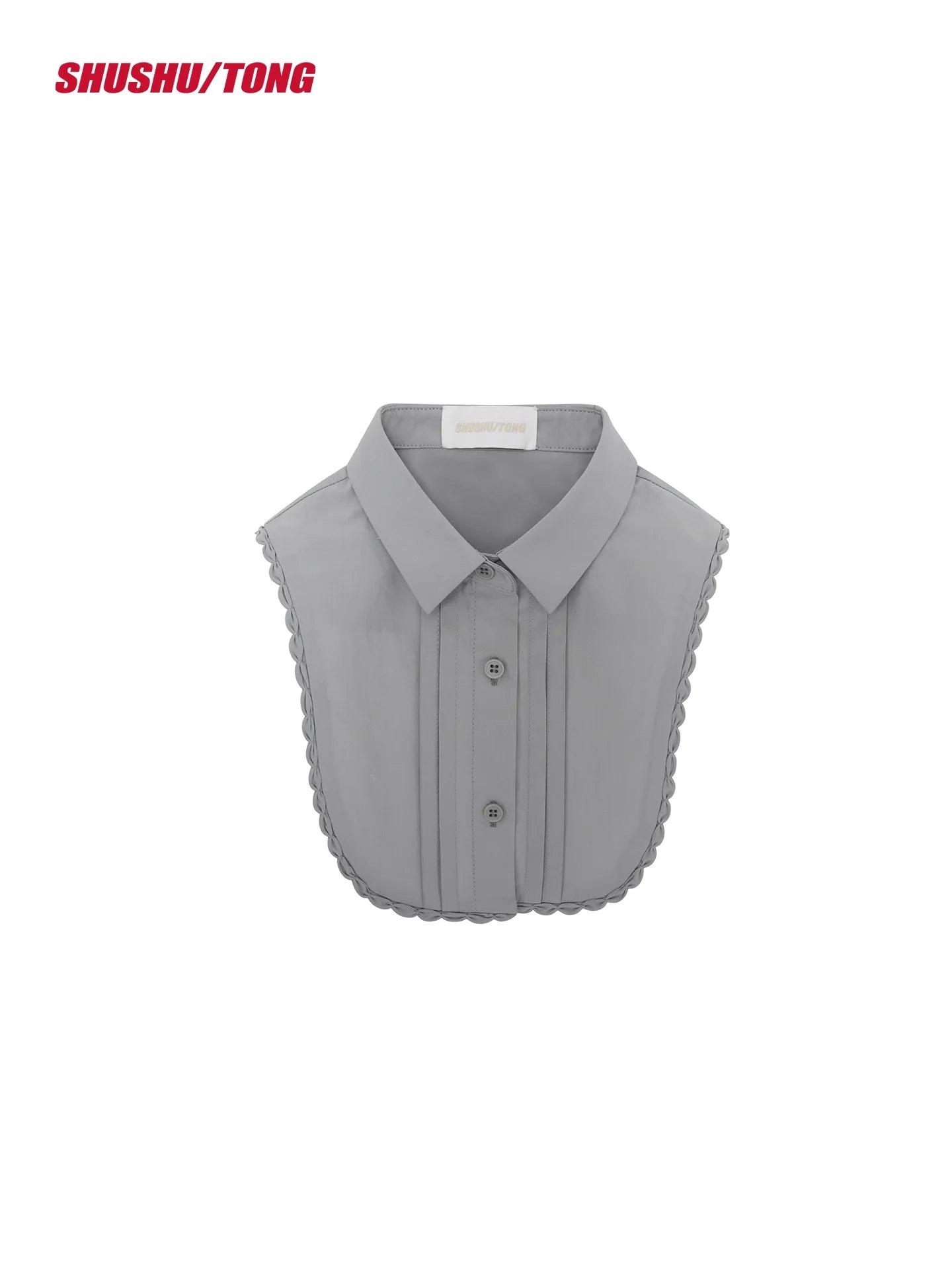 Elevate your winter wardrobe with this stylish women's lace detachable collar, designed to add a polished, layered look without the bulk. Featuring a crisp white hue, the collar showcases a timeless pointed design with a classic button-down front. Delicate vertical pintuck detailing flanks the button placket, while scalloped trim along the edges provides a soft, feminine finish. Perfect for layering under sweaters, dresses, or tops, this accessory offers a refined touch for any winter ensemble.