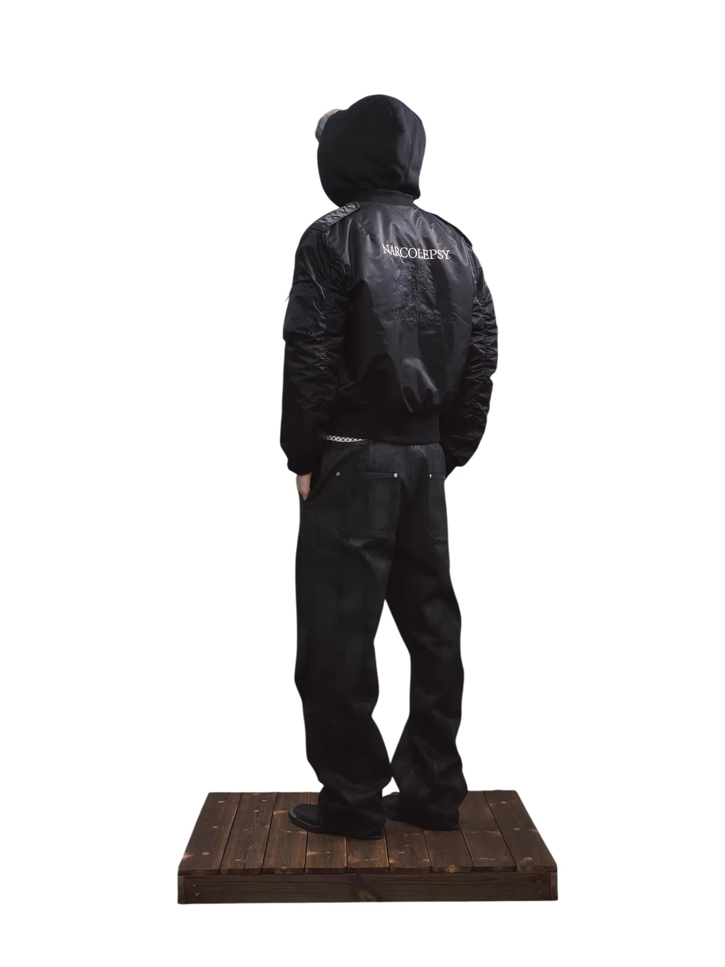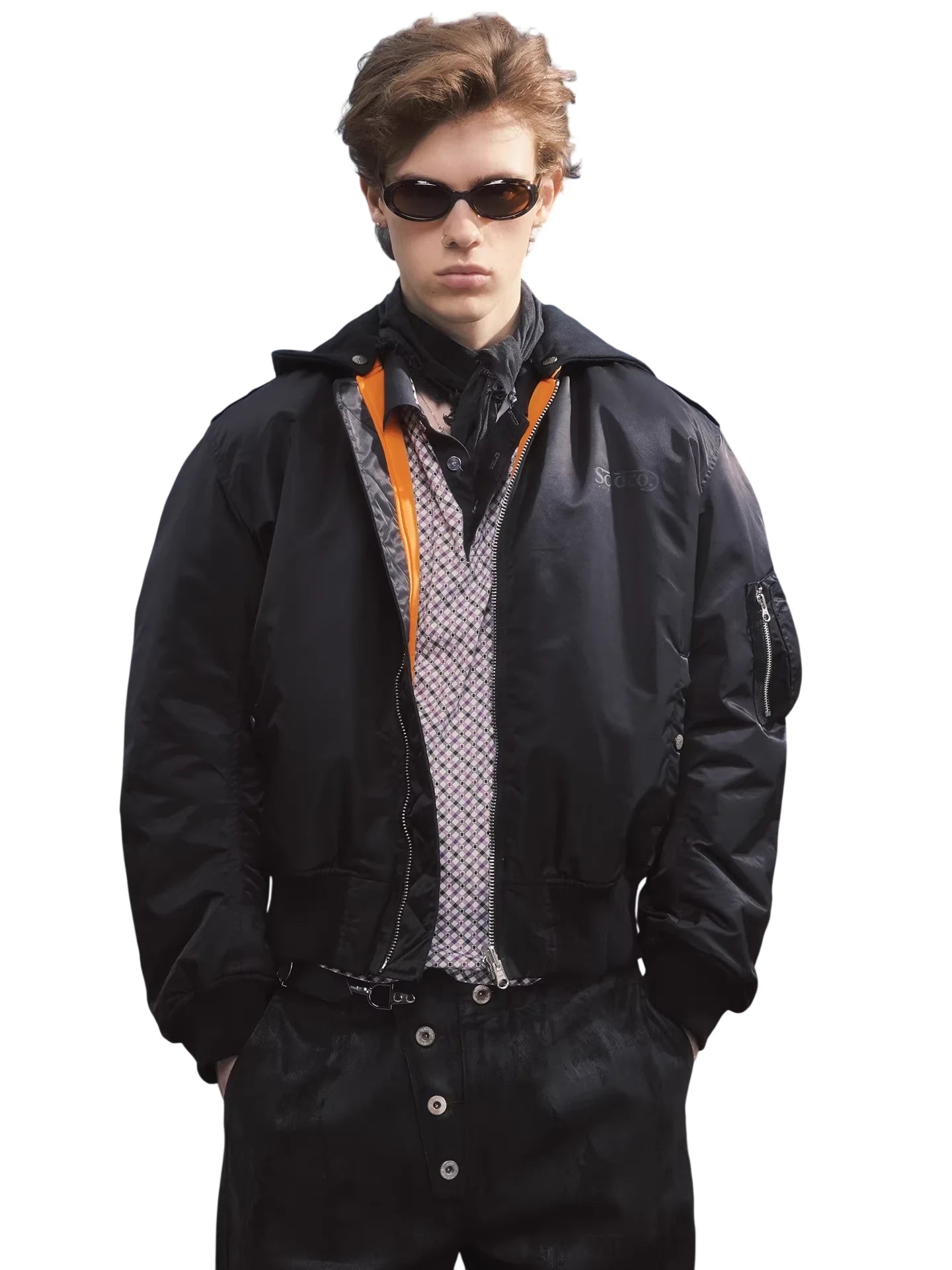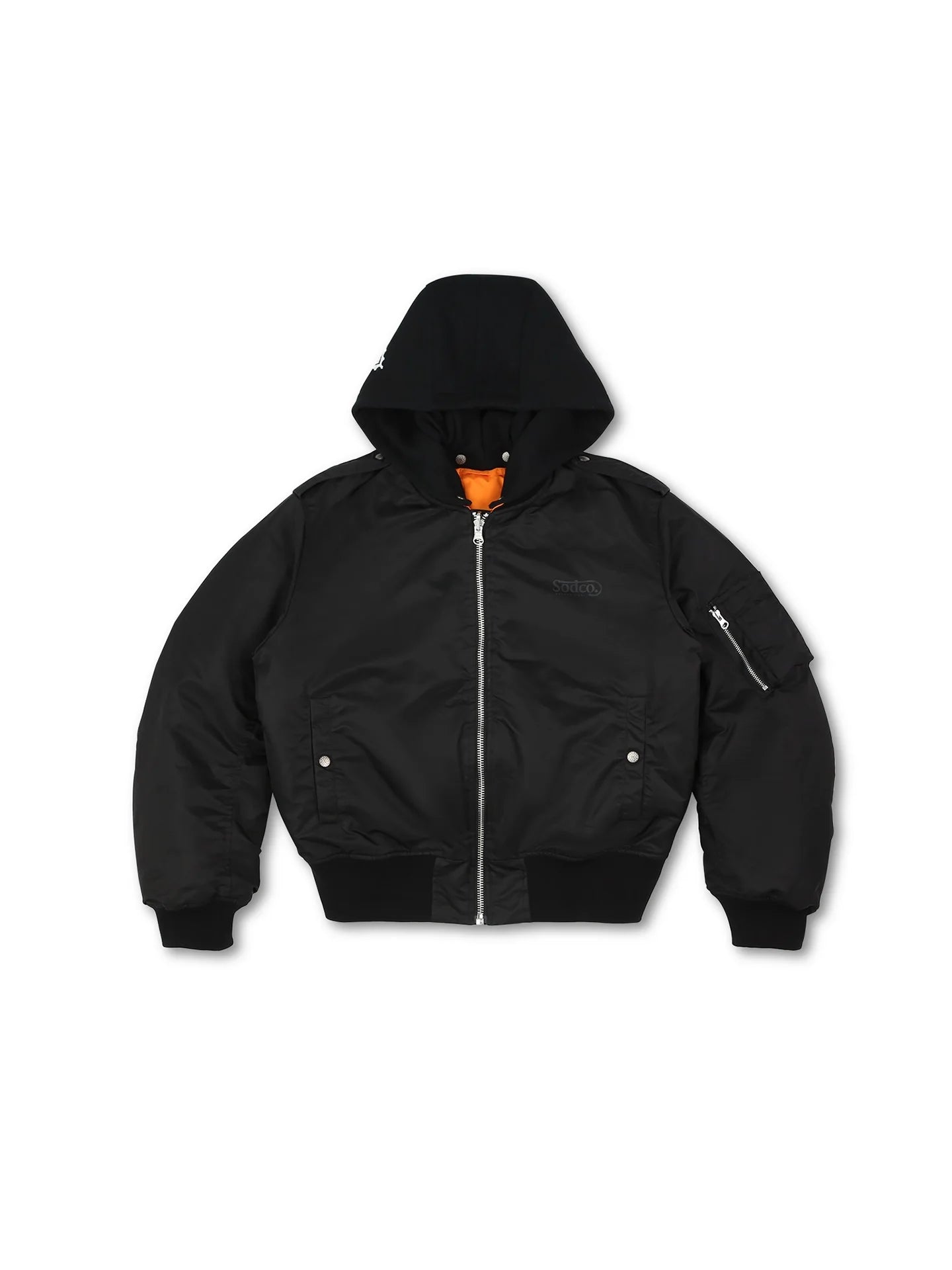 SOD Online Store Men's Black Hooded Bomber Jacket with Orange Lining