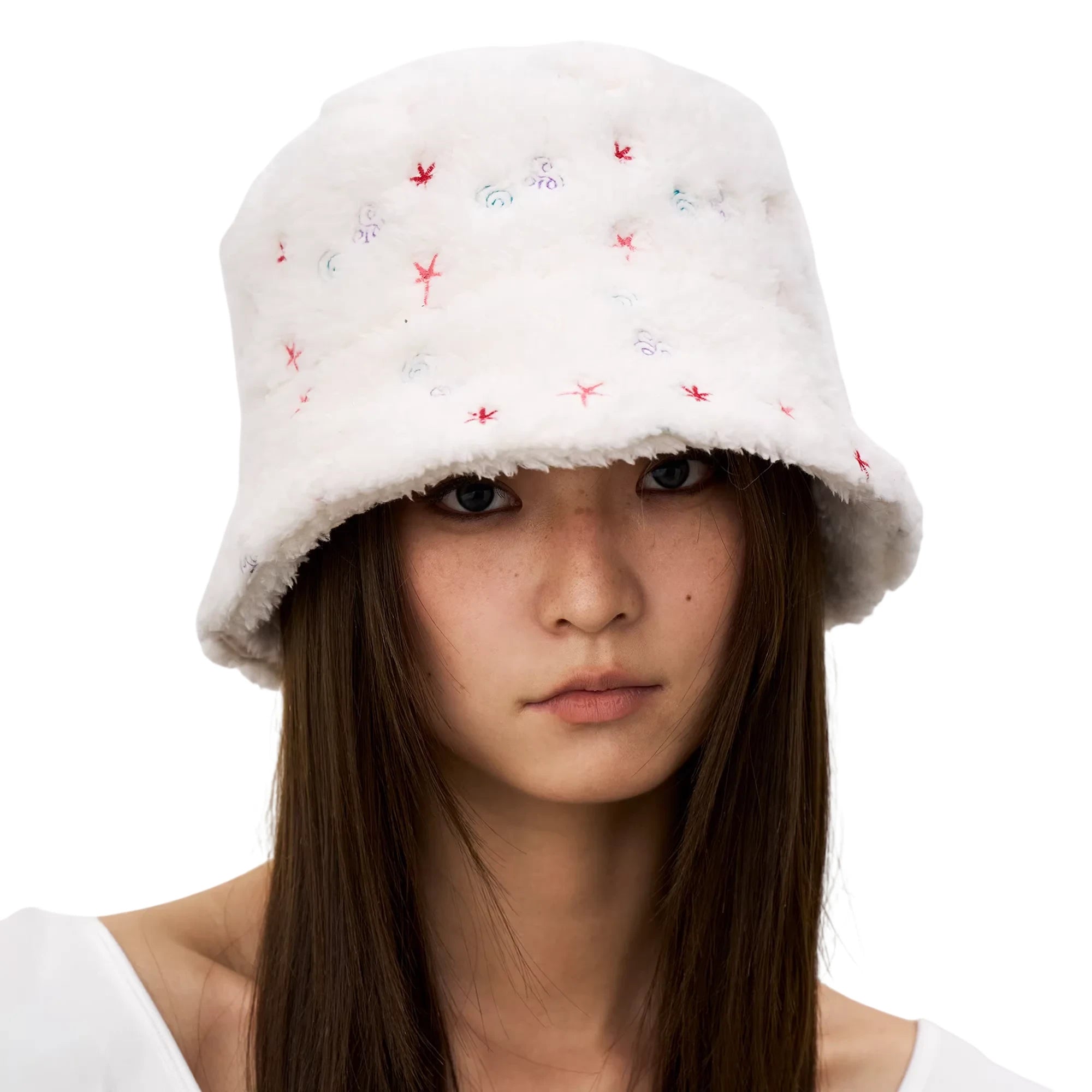THELIGHT OFFICIAL Women's Fuzzy Embroidered Star Bucket Hat - White