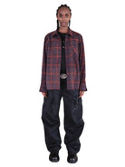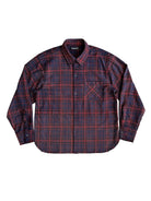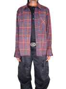 Elevate your streetwear style with this men's red and navy plaid flannel shirt. Designed with a soft brushed texture and finished with edgy fringe detailing, this loose-fitting shirt offers a bold yet laid-back vibe. Perfect for layering, it pairs well with casual outfits for a rugged, urban look.