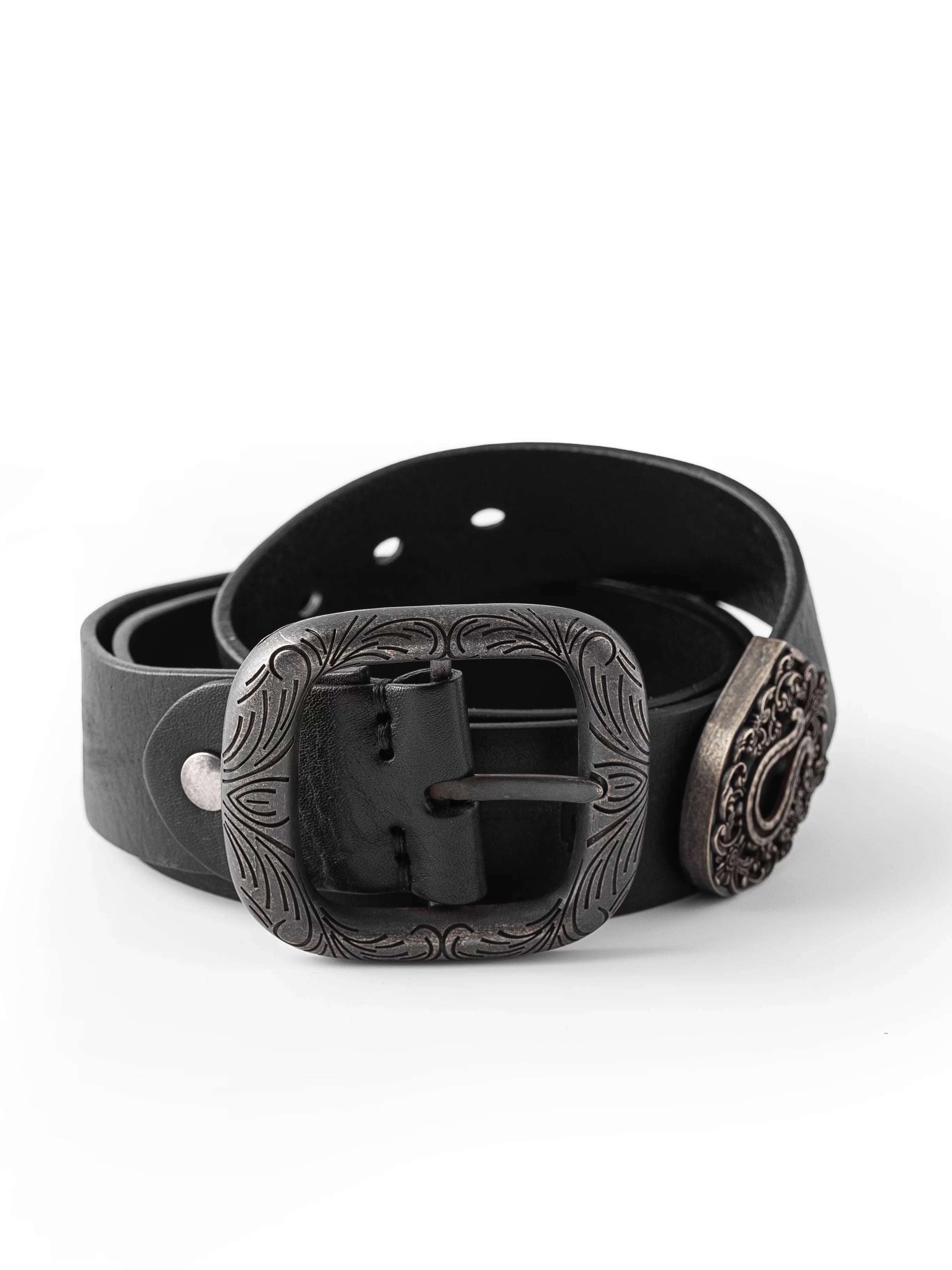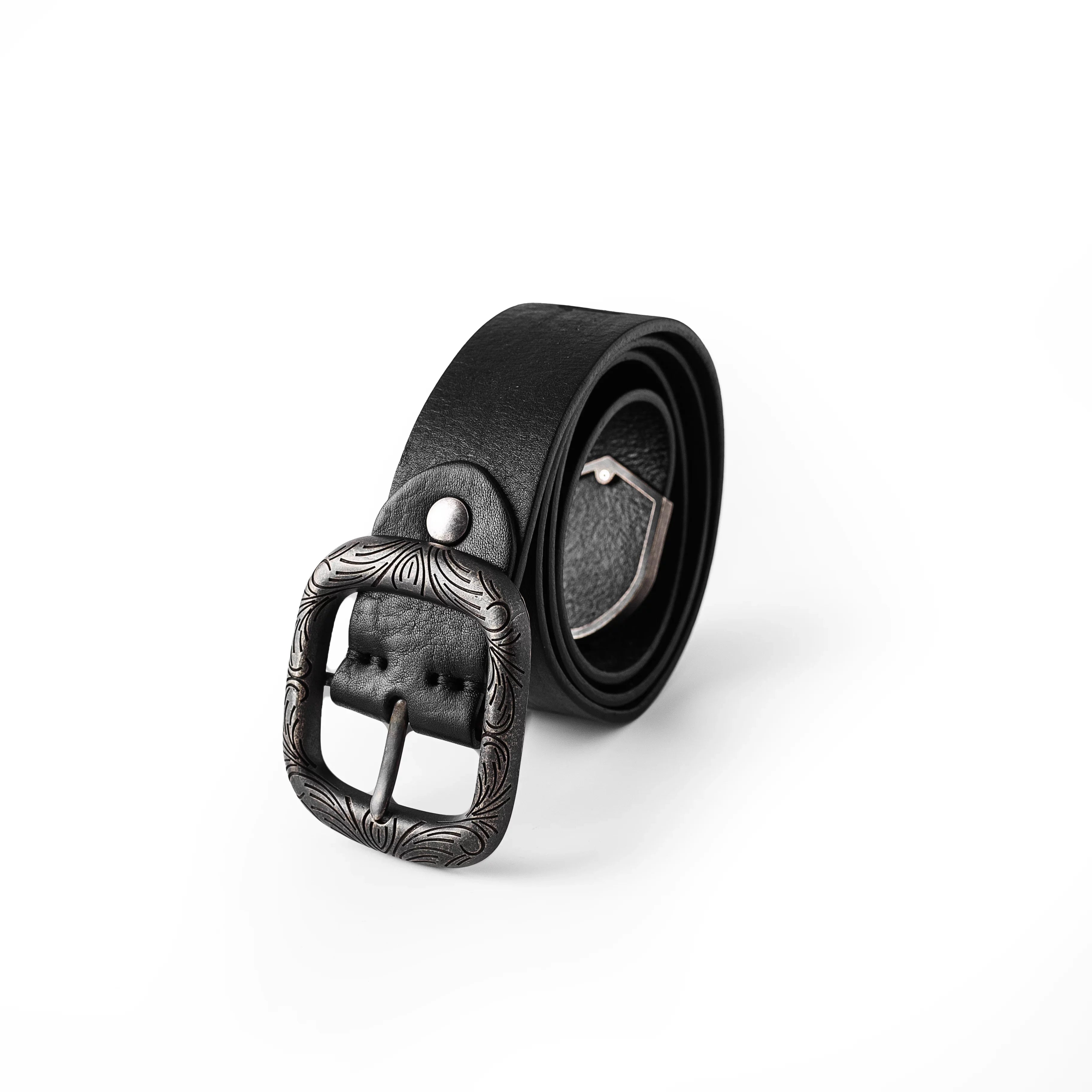 Y OFFICIAL Vintage Engraved Leather Belt with Ornate Buckle